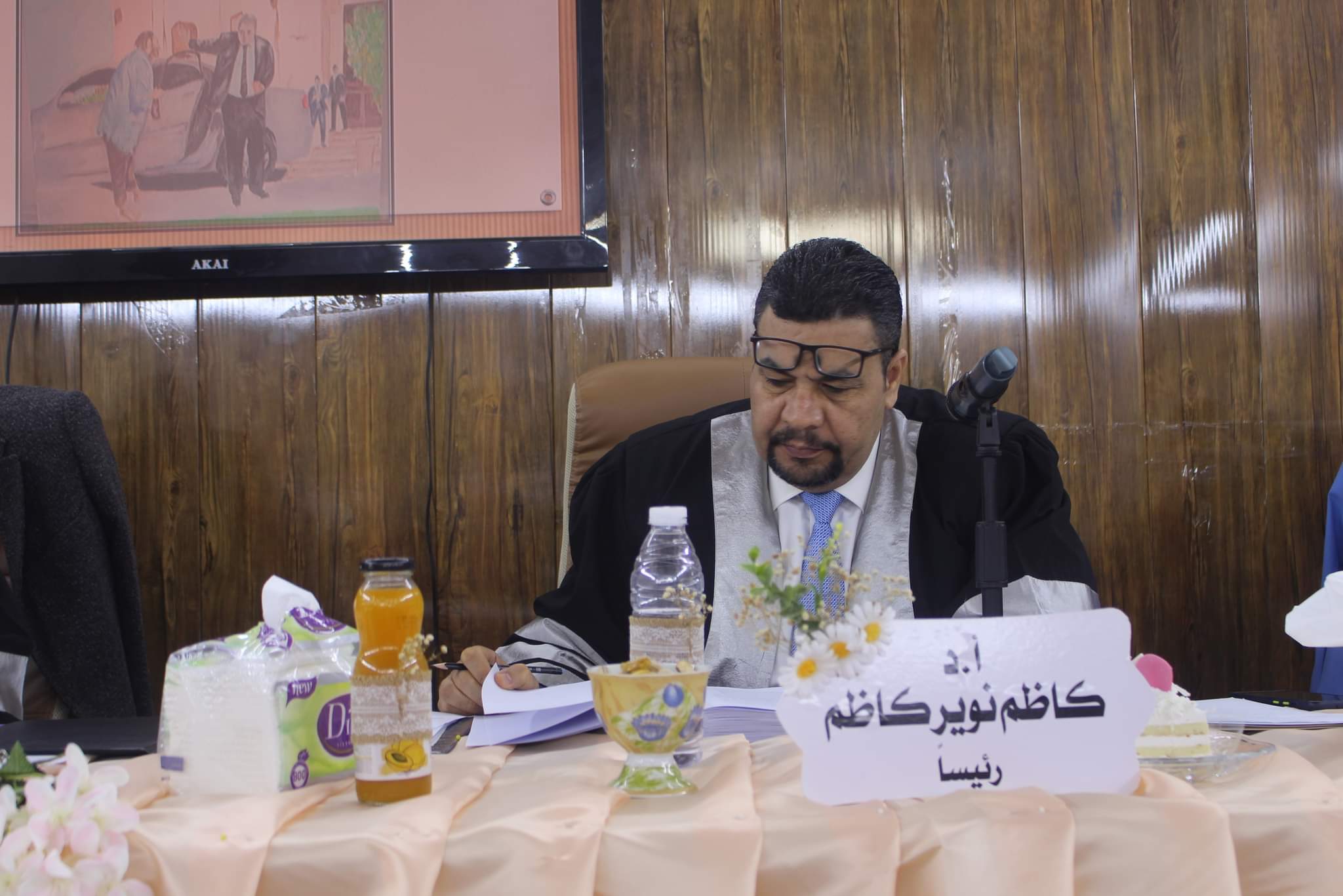 يوم الخميس الموافق 3/11/2022 في تمام الساعة الحادية عشر الصباحاً وعلى قاعة الدراسات العليا