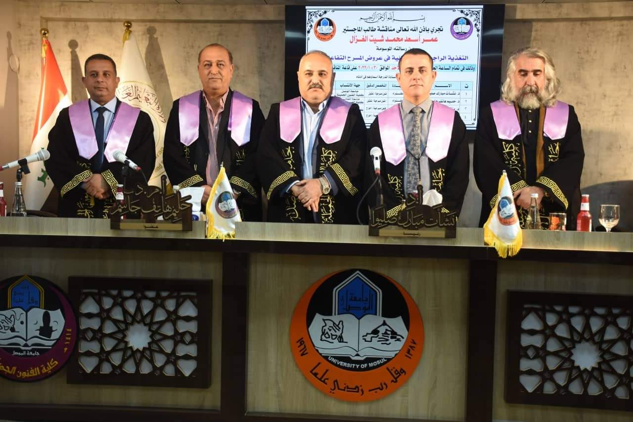 شارك الاستاذ المساعد الدكتور حليم هاتف جاسم معاون العميد للشؤون الادارية في لجنة مناقشة رسالة الماجستير الموسومة ( التغذية الراجعة تقنية أدائية في عروض المسرح التفاعلي ) للطالب عمر اسعد محمد شيت في كلية الفنون الجميلة جامعة الموصل وذلك يوم الأحد ٣٠ /١٠/ ٢٠٢٢ على قاعة الدراسات العليا .