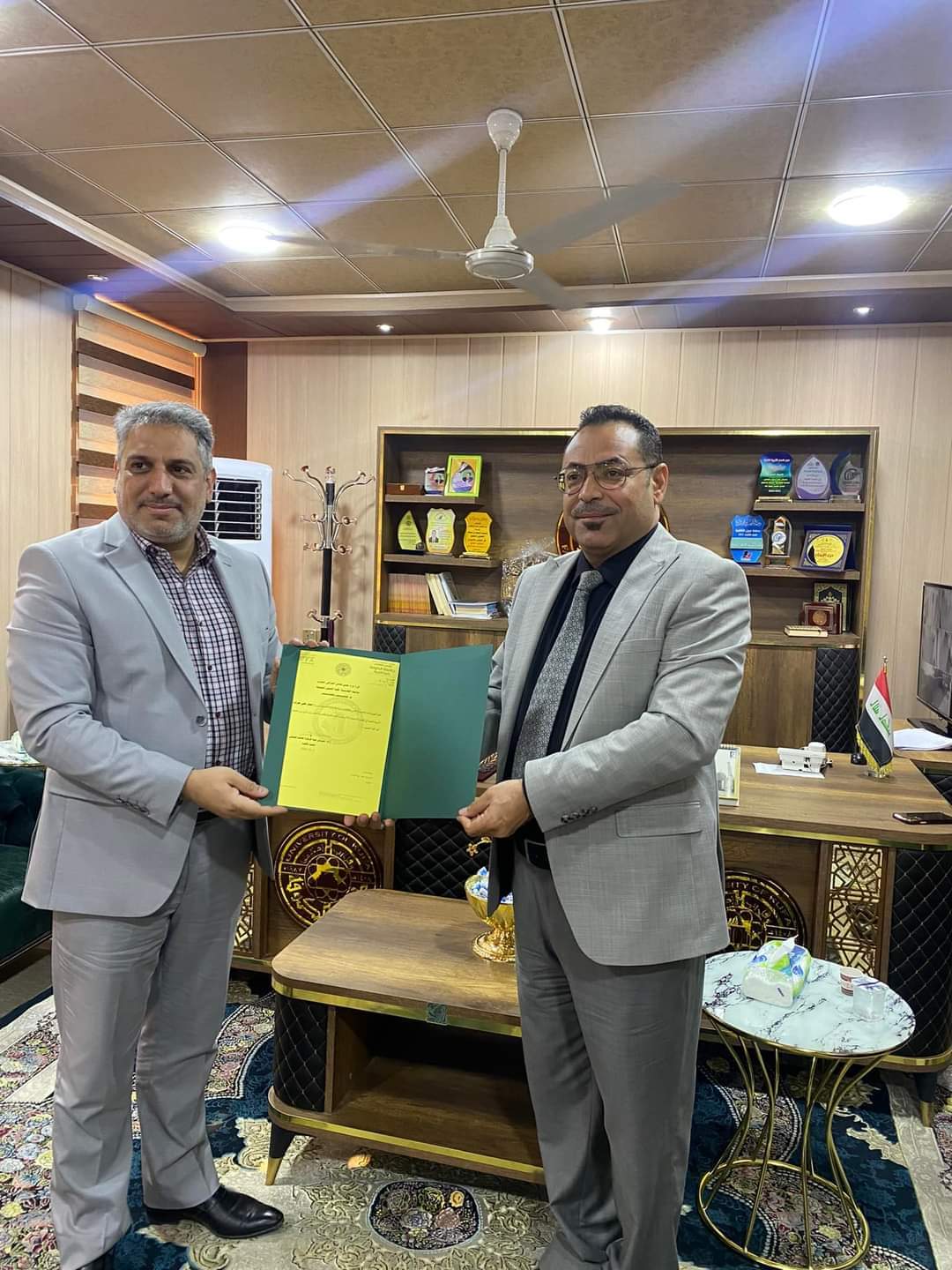 هذا وقد قامت عمادة كلية التربية بمنح السيد عميد كلية الفنون الجميلة أ.د.كاظم نوير كتاب شكر وتقدير تثمينا للجهود المبذولة والتعاون المشترك بين الجانبين في مجال البحث العلمي .