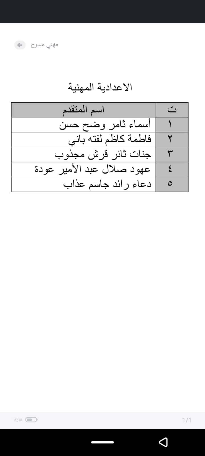 وفيما يأتي قوائم باسماء طلبة الوجبة الاولى من الخاضعين لاختبارات القبول المباشر ليوم غد .