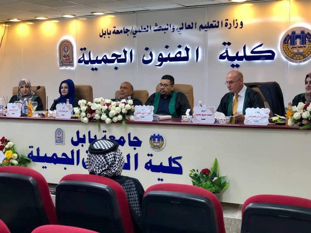 شارك السيد عميد كلية الفنون الجميلة جامعة القادسية الاستاذ الدكتور كاظم نوير الزبيدي المحترم عضواً مناقشا لاطروحة الدكتوراه الموسومة ( تحولات المنظومة القيمية وأبعادها التعبيرية في الخطاب البصري الغربي المعاصر ) لطالبة الدكتوراه ساره فلاح حسن علوان )