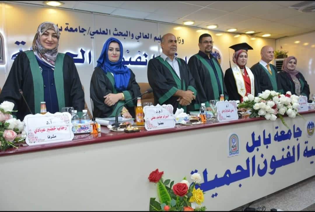 هنأ السيد عميد كلية الفنون الجميلة الاستاذ الدكتور كاظم نوير الزبيدي المحترم المدرس الدكتور ساره فلاح حسن علوان المحاضرة في كلية الفنون الجميلة جامعة القادسية بمناسبة حصولها على شهادة الدكتوراه عن اطروحتها الموسومة ( تحولات المنظومة القيمية وأبعادها التعبيرية في الخطاب البصري الغربي المعاصر ) من كلية الفنون الجميلة جامعة بابل .