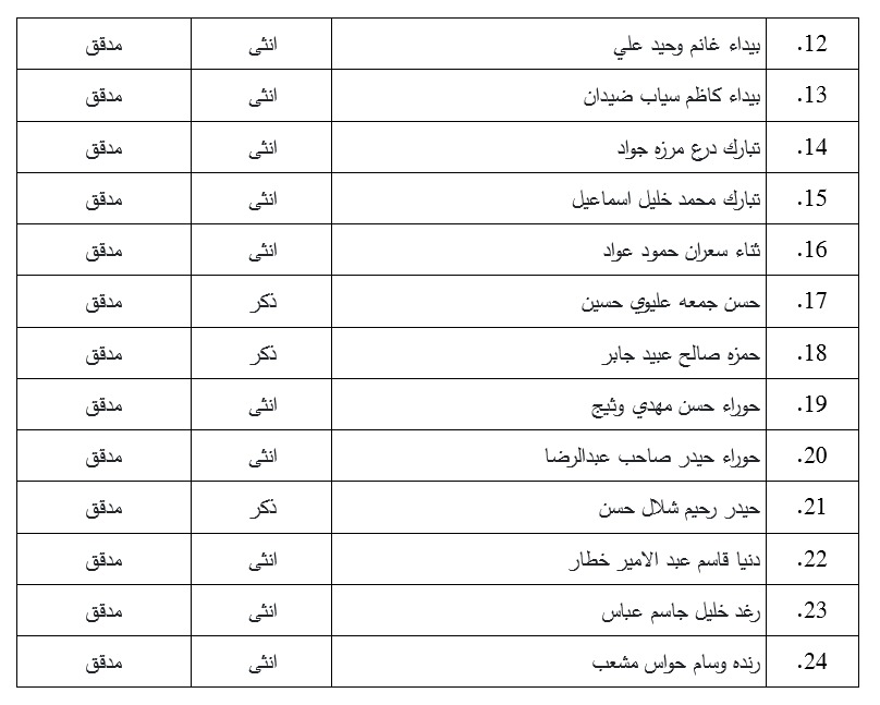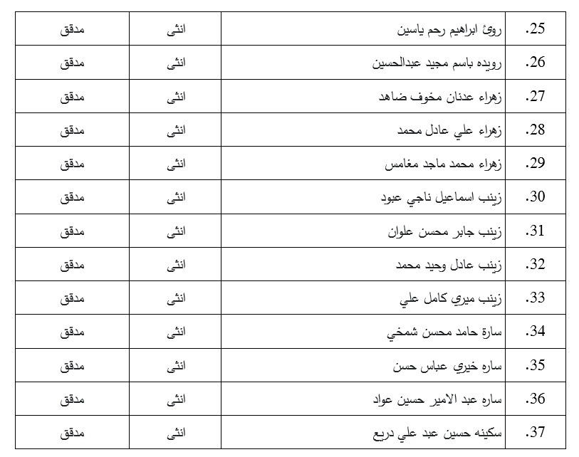 تعلن عمادة كلية الفنون الجميلة جامعة القادسية اسماء المتقدمين للدراسة العليا ( الماجستير ) في قسم التربية الفنية للعام الدراسي (٢٠٢٢-٢٠٢٣)