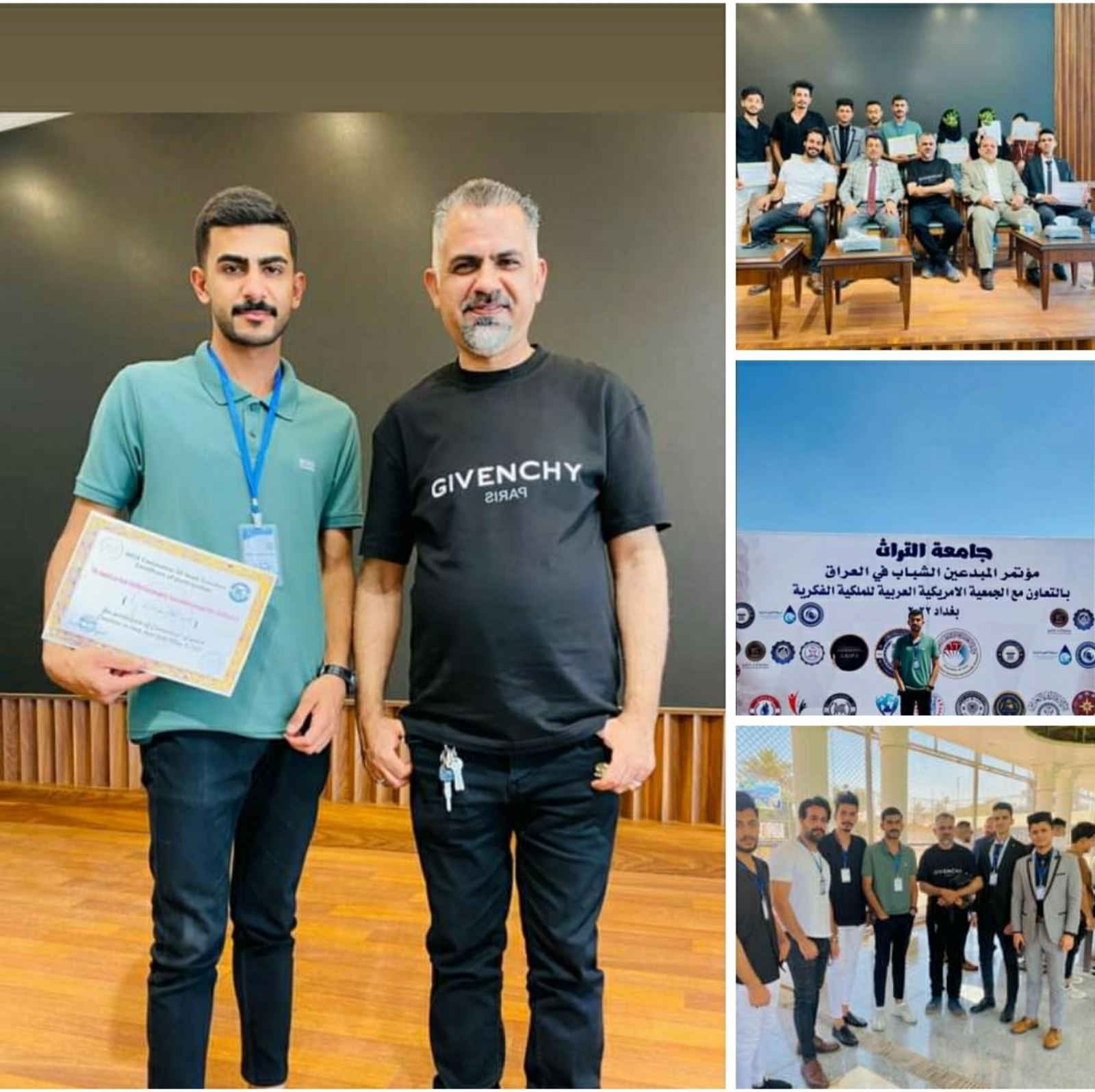 تم تكريم الطلبة الممثلين لكلية الفنون الجميلة جامعة القادسية بعد حصولهم على المرتبة الاولى الذهبية والمرتبة الثانية الفضية بمعرض اللوحات والنتاجات الفنية على هامش المؤتمر في رحاب كلية التراث الاهلية .