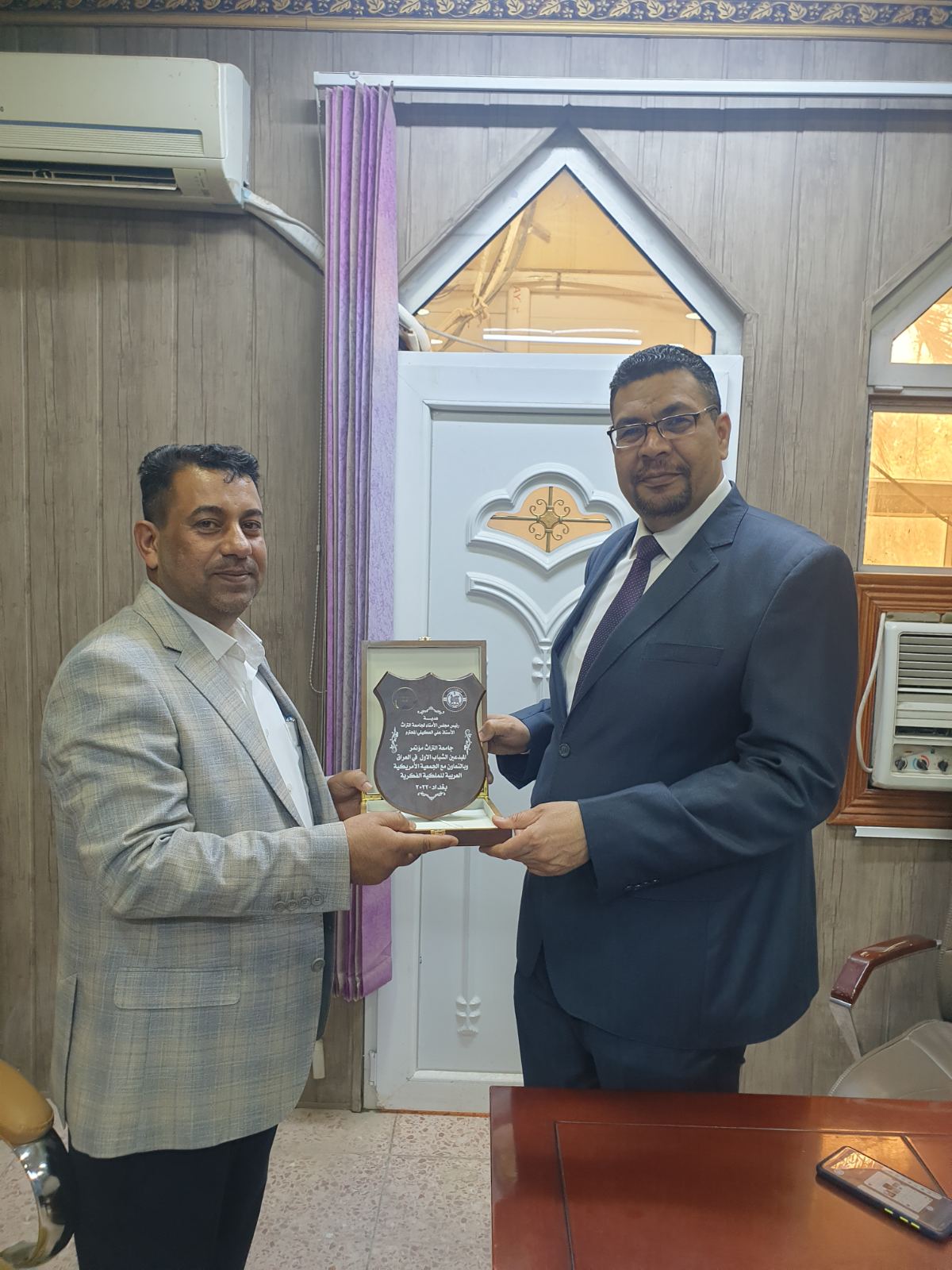 وتم تقديم درع التميز والابداع للسيد العميد من قبل الدكتور علي جرد المعاون العلمي وبحضور نخبة مباركة من اساتذة وموظفي الكلية متمنين لحضرته ولعمادة الكلية من اساتذة وموظفين وطلبة دوام الموفقية والنجاح والتميز.