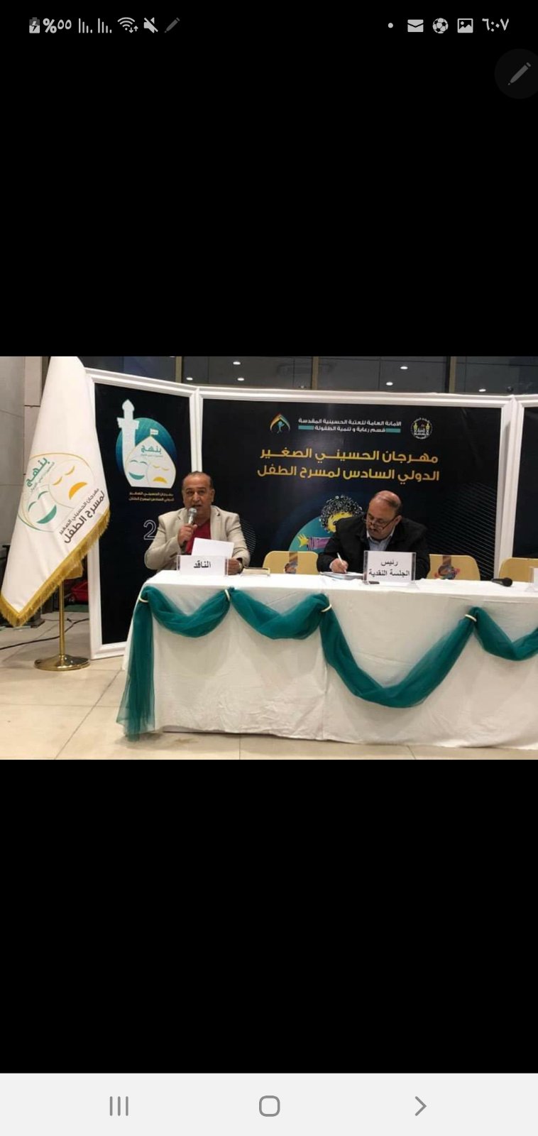 شارك التدريسيّان في كلية الفنون الجميلة جامعة القادسية الاستاذ المساعد الدكتور حليم هاتف جاسم و الاستاذ المساعد الدكتور مهند ابراهيم العميدي في مهرجان الحسيني الصغير لمسرح الطفل بدورته السادسه والذي اقامته العتبة الحسينية المقدسة قسم رعاية الطفولة ضمن لجنة النقد الفني للمهرجان .