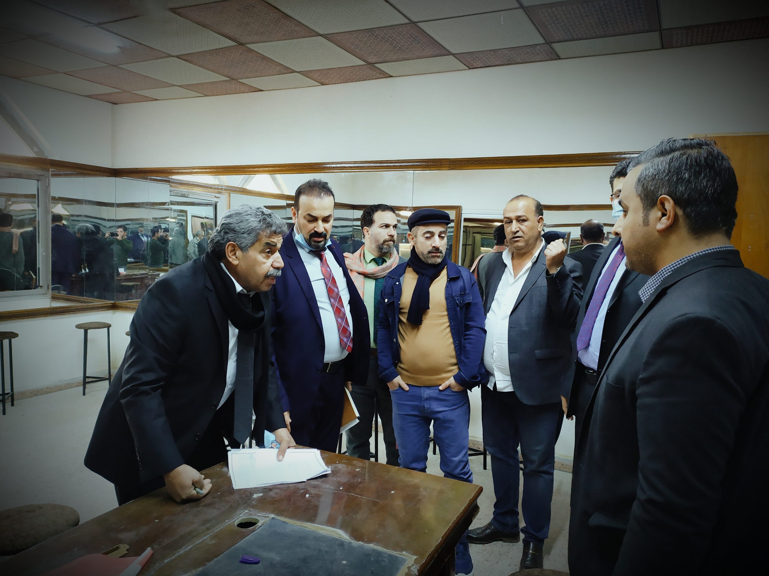 تم اليوم الثلاثاء الموافق 1/2/2022 زيارة اللجنة الوزارية المكلفة بالاطلاع على الامكانيات المادية والبشرية لافتتاح الدراسات العليا في قسم الفنون المسرحية في كلية الفنون الجميلة جامعة القادسية .