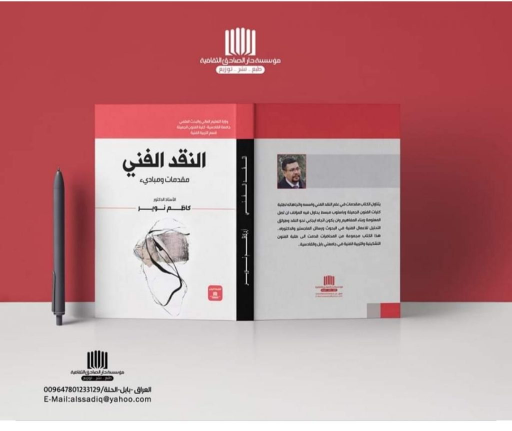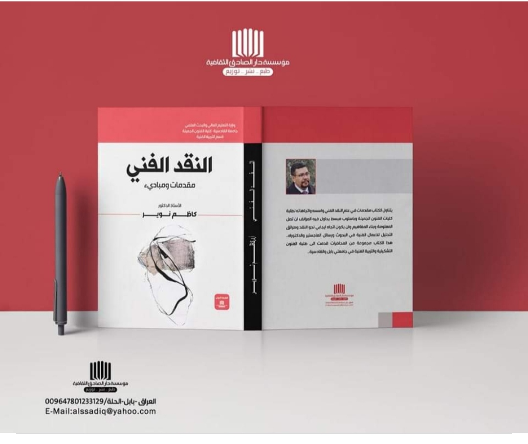 صدر حديثا عن دار مؤسسة الصادق الثقافة كتاب بعنوان ( النقد الفني .. مقدمات ومبادئ ) للسيد عميد كلية الفنون الجميلة الاستاذ الدكتور كاظم نوير الزبيدي المحترم .