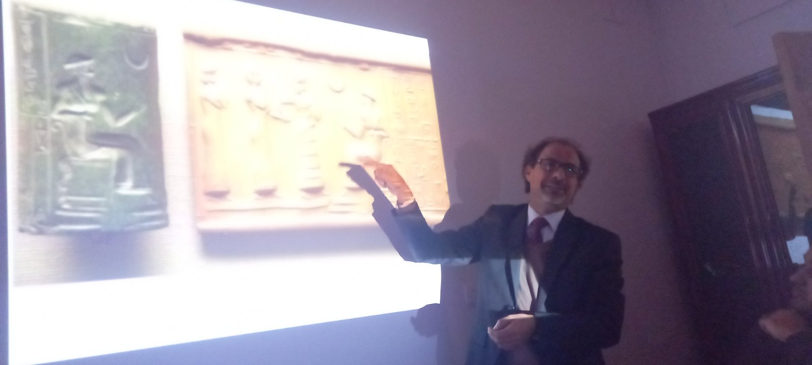 وتناولت الندوة اثر السياسة على الفنون في بلاد الرافدين واستعرض فيها بدايات تشكل الفكر السياسي وتطوره عبر العصور، وابتدأ من أثر الحكومة الإلهية ممثلة بالالهة الرئيسة وعلى رأسها الاله انو اله السماء ومن بعده الاله انليل ومن ثم الاله سين والالهة اينانا (عشتار ) والاله ادد وملكة الليل لوليتا ومن بعد ذلك انتقل الاستاذ المحاضر إلى ذكر اثر الملك بوصفه السياسي الأول ومحور السياسة ورأس هرمها وابتدأ بالصولجانات سواء كانت الهية او ملكية ومن بعدها تماثيل الالهة والملوك بوصفهم مدبرين لشؤون الناس السياسية ومن بعدها المسلات التي وثقت اعمال الملوك واستعراض ذلك بحسب العصور بدأ من الألف الرابع قبل الميلاد وصولا إلى نهاية العصر البابلي الحديث وانتهاء حكم الدولة الكلدية في عام ٥٣٩ ق م..