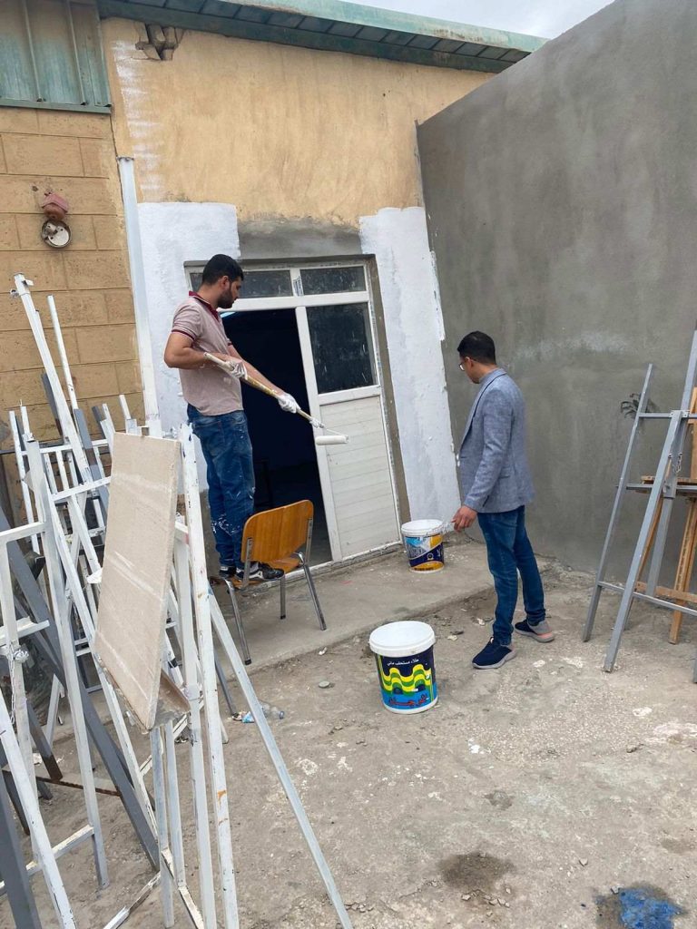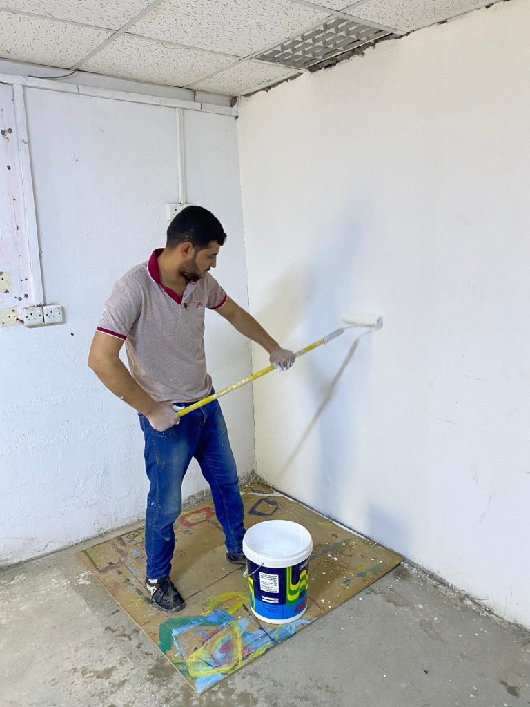 بناء على توجيهات السيد عميد كلية الفنون الجميلة الاستاذ الدكتور كاظم نوير الزبيدي المحترم في تعزيز انتماء الطالب لكليته وجعله جزء من المنظومة الجمالية للكلية تم هذا اليوم الاثنين إعادة تأهيل قاعة المرسم وتنظيفها وصبغها بأنامل طلبة المرحلة الثالثة في قسم التربية الفنية وقد جائت هذه المبادرة بالتنسيق مع معاون العميد للشؤون الادارية الدكتور حليم هاتف والسيد رئيس قسم التربية الفنية الدكتور عباس تركي .