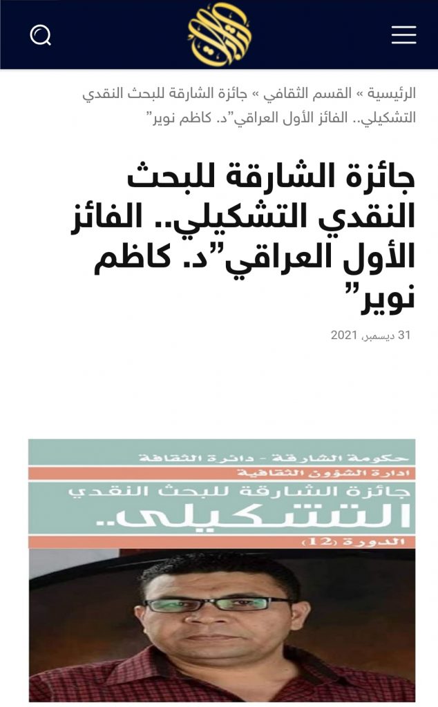 لمشاهدة اللقاء كاملاً على قناة الشارقة مع الدكتور كاظم نوير الفائز بالجائزة الأولى الدخول الى الرابط التالي