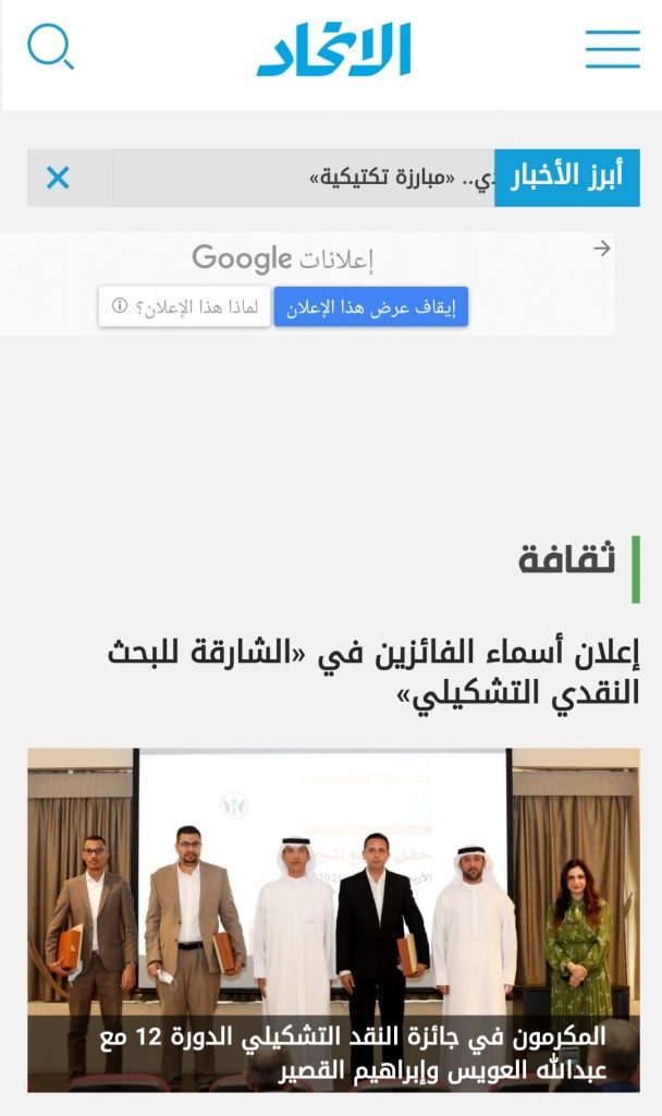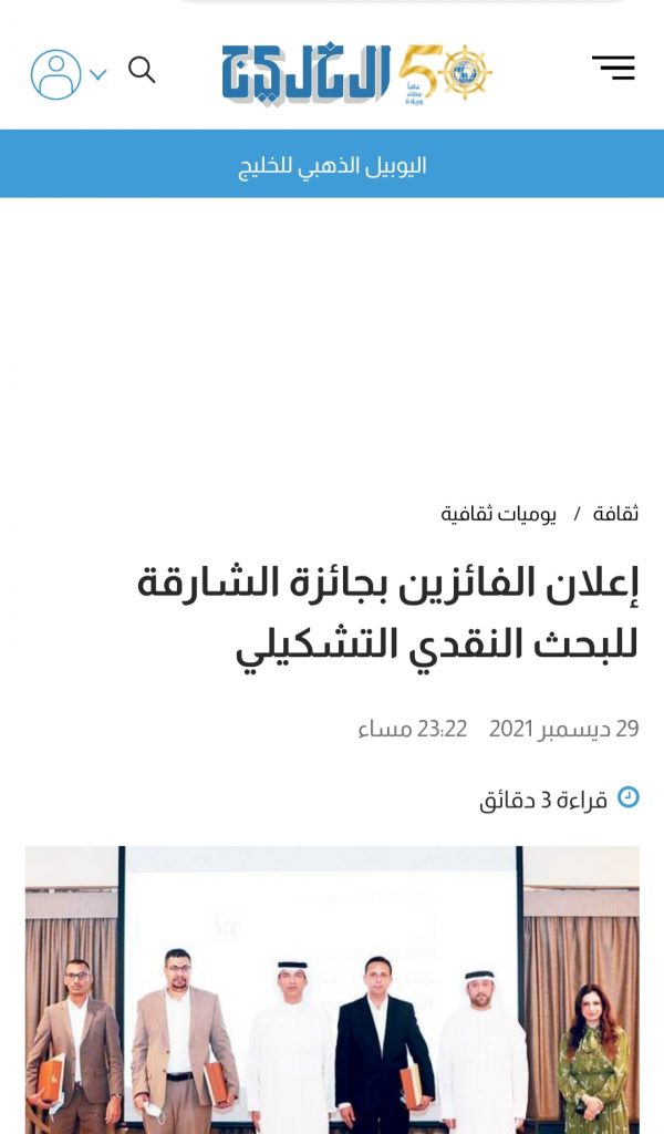 على مدى الأيام الماضية تناولت الصحف العربية والقنوات الفضائية خبر نتائج جائزة الشارقة للبحث النقدي التشكيلي والذي تمحور حول الثلاث جوائز الأولى والتي تألق العراق في الصدارة ليكون هو الأول في المسابقة .