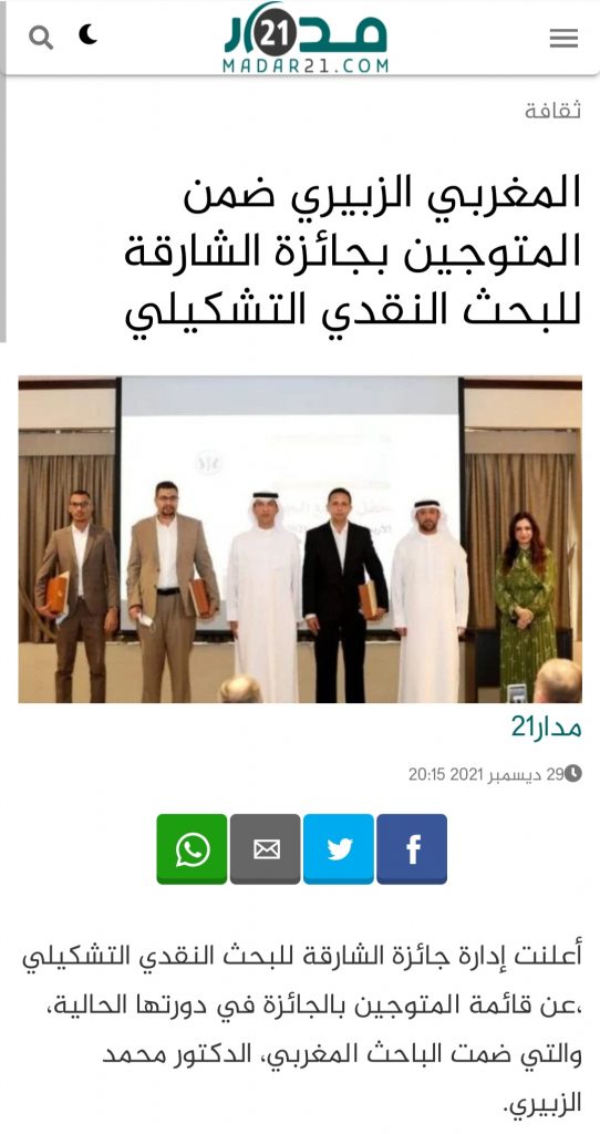 في حين كان المركز الثاني من نصيب الدكتور محمد الزبيري من المغرب عن بحثه (الفن التشكيلي والسينوغرافيا- من المواكبة إلى التماهي)
