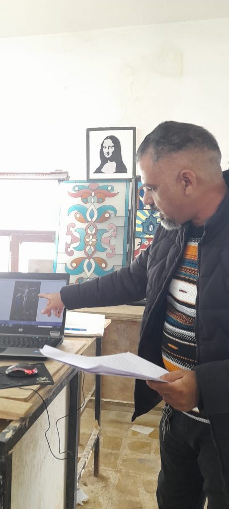 وتناولت الورشة موضوعة الرسم على الزجاج الذي يعد أحد أنواع الفنون الجميلة والتعرف على واسهل الطرق في عملية الرسم على الزجاج من حيث التخطيط الأولي ومزج الالوان وكيفية تنفيذ الالوان على الزجاج كذلك تناولت لمحة تأريخية عن الزجاج المعشق والتمرحلات التي مر بها والتأثيرات الدينية والفكرية وتأثير الكنيسة على مواضيعه وحتى يومنا الحاضر من اندماجه بالعمارة الحديثة وتأثره بالتيارات الفنية المختلفة على مر الازمان .