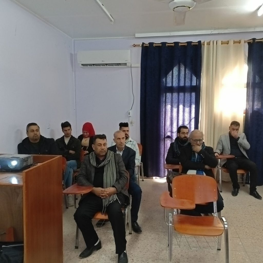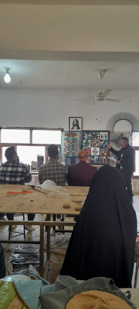 هذا وقد حضرة الندوة نخبة من الاساتيذ والطلبة في كلية الفنون الجميلة جامعة القادسية وقد تم القاء الندوة في قاعة الدراسات العليا في قسم التربية الفنية.