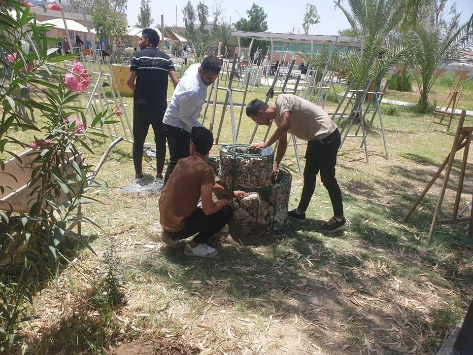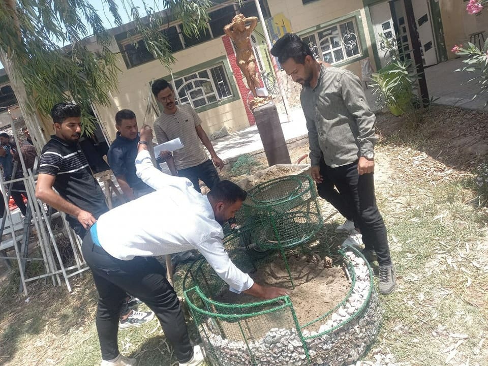 برعاية السيد رئيس جامعة القادسية الاستاذ الدكتور كاظم جبر الجبوري المحترم وباشراف ومتابعة السيد عميد كلية الفنون الجميلة المحترم والسيد رئيس قسم التربية الفنية الاستاذ المساعد الدكتور عباس تركي الجبوري المحترم. وفي صباح يوم الاثنين الموافق 2023/5/15 اقيم معرضا فنيا لطلبة المرحلة الثالثة الدراسة الصباحية شعبة أ وبأشراف استاذ مادة التصميم والتزيين الدكتور مالك جاسم تضمن المعرض مجموعة من الاعمال التصميمية الفنية الجميلة وبجهود وامكانيات ذاتية من قبل الطلبة وتدريسي المادة تضمنت مجموعة من المصاطب لجلوس الطلبة تم عملها بطريقة فنية جميلة فضلا عن سندانة ورود نفذت بطريقة حلزونية فيها قطع من حجر المرمر الملون والنباتات والازهار الحميلة التي اضفت لفضاء وحدائق كلية الفنون الجميلة رونقا وجمالا. وقد اثنى وثمن السيد العميد واساتذة وطلبة الكلية هذه المبادرة الجميلة والجهود الرائعة المبذولة من قبل الطلبة وتدريسي المادة الدكتور مالك جاسم التي عكست مدى تفاعل وانسجام الطلبة في خدمة بيتهم الثاني الكلية واظهاره بالمظهر الجميل .