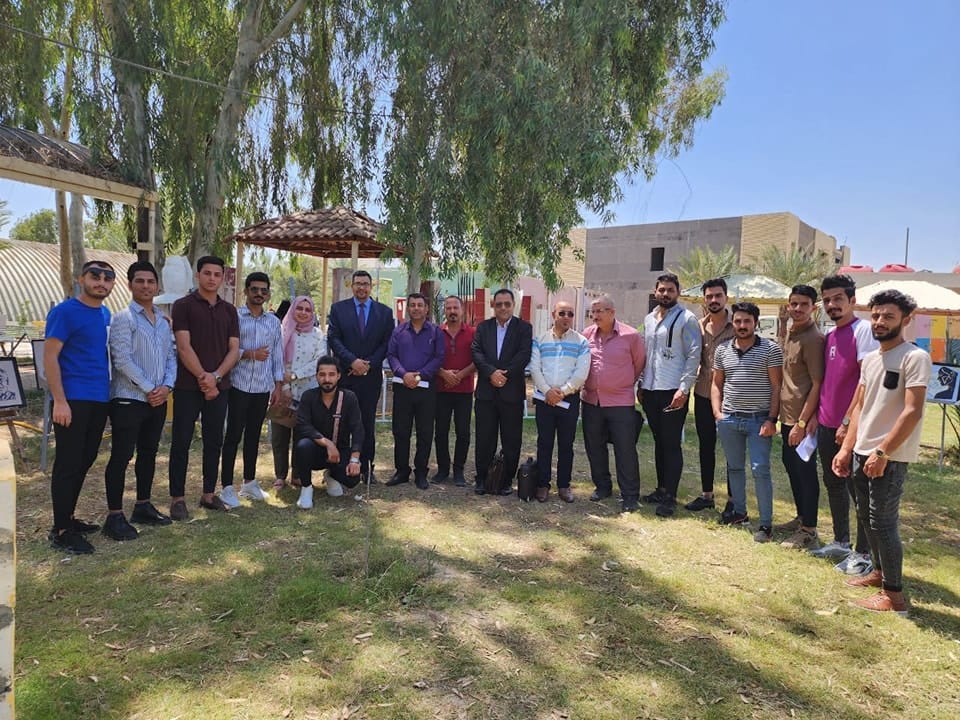 برعاية السيد رئيس جامعة القادسية الاستاذ الدكتور كاظم جبر الجبوري المحترم وباشراف وحضور السيد عميد كلية الفنون الجميلة الاستاذ الدكتور كاظم نوير الزبيدي المحترم وبحضور السيد معاون العميد العلمي ا.م.د. علي جرد الحميري والسيد رئيس قسم التربية الفنية ا.م.د. عباس تركي الجبوري المحترمون ونخبة من اساتذة وطلبة القسم والكلية. اقيم في صباح يوم الثلاثاء 2023/5/16 في رحاب حدائق الكلية معرضا فنيا للصورالفوتوغرافية في مادة تاريخ الفن القديم لطلبة المرحلة الاولى الدراسة الصباحية باشراف تدريسي المادة (ا.م.د. احمد لفته رهمة القصير) وقد ضم المعرض مجموعة من الصور الفوتوغرافية (البوسترات) التي وثقت الحياة اليومية والفنية والثقافية في حضارة بلاد الرافدين وعكست تطور الفنون المتنوعة من فن العمارة القديمة والازياء والفنون البابلية والاشورية بما تضمنته من موضوعات فنية جميلة في الصور المعروضة بدقة عالية. وقد اشاد السيد عميد الكلية بالمعرض مثمنا الجهود المبذولة من قبل تدريسي المادة ورئاسة القسم لما لمسه من تطور في امكانيات الطلبة الفنية نحو مزيد من العطاء العلمي والفني.