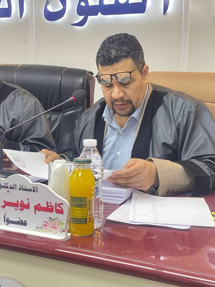 شارك التدريسي في كلية الفنون الجميلة الاستاذ المساعد الدكتور علاء عبد الكاظم الركابي في مناقشة اطروحة الدكتوراه بعنوان ( قضايا النقد الأدبي في مجلة الثقافة الجديدة ) للباحث وائل كامل رشودي وقد تألفت لجنة المناقشة من :