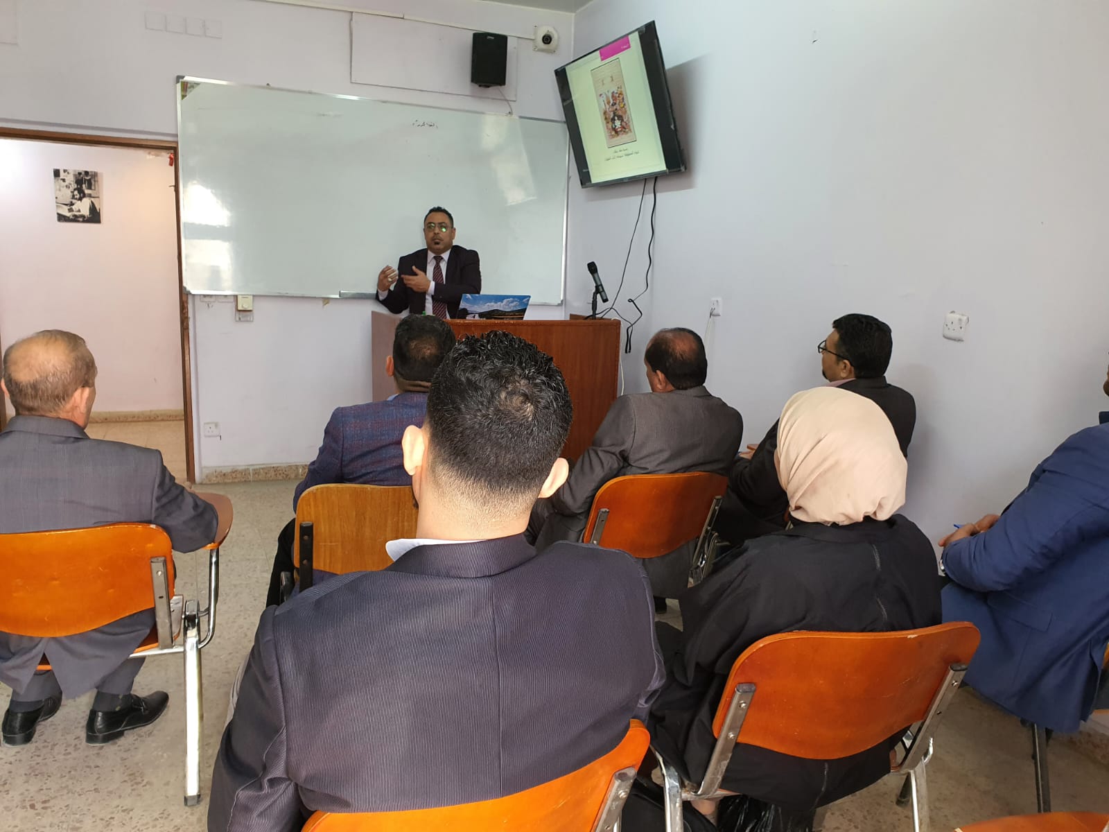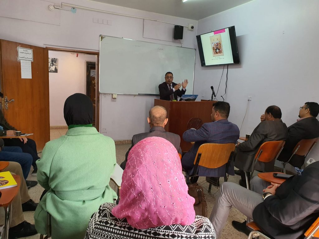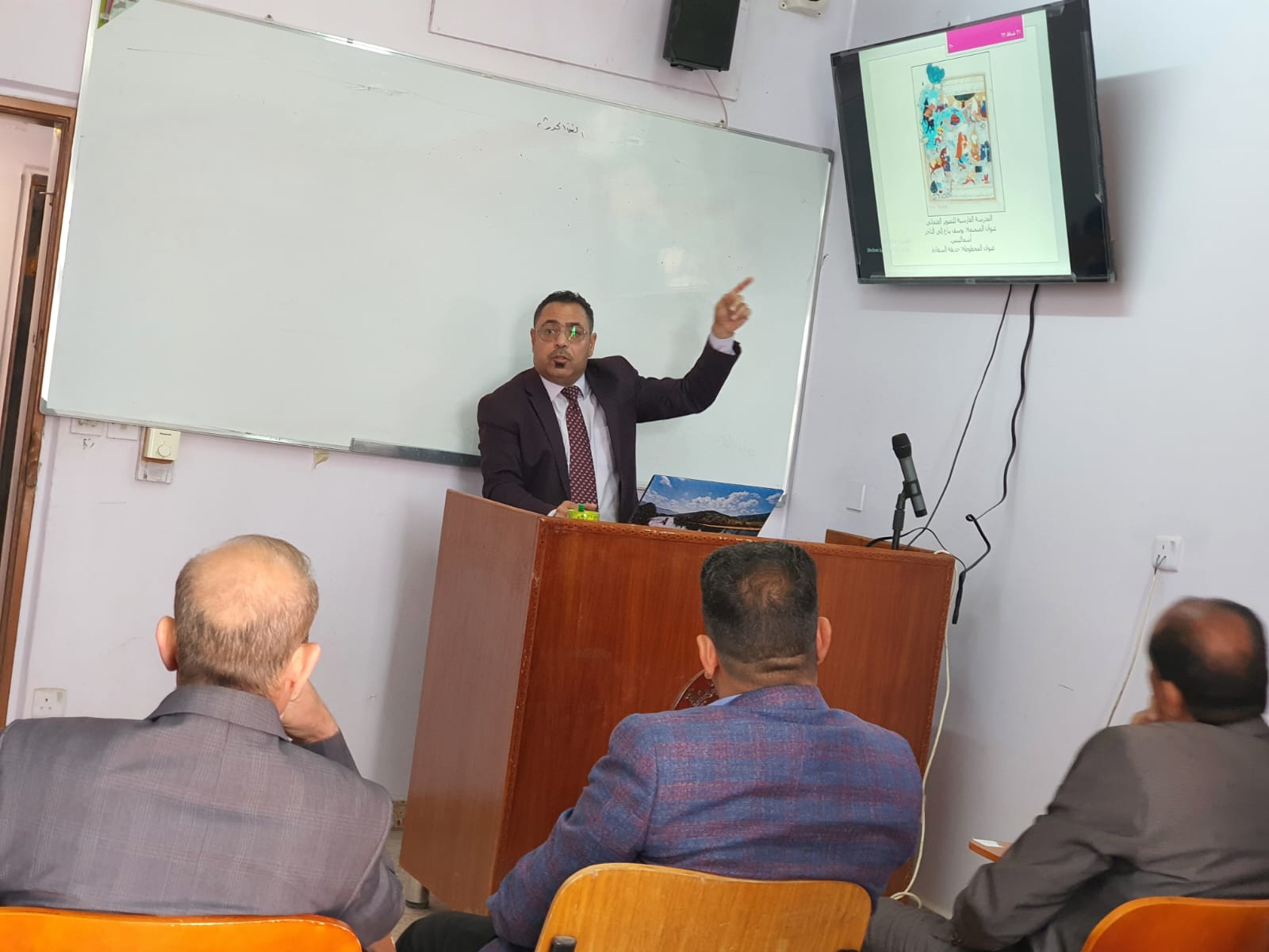 برعاية السيد رئيس جامعة القادسية الاستاذ الدكتور كاظم جبر الحبوري المحترم واشراف السيد عميد كلية الفنون الجميلة الاستاذ الدكتور كاظم نوير الزبيدي اقام قسم التربية الفنية في صباح يوم الثلاثاء الموافق 2023/2/21 ندوة علمية تحت عنوان ( الابعاد الوظيفية والجمالية للتصوير الاسلامي) القاها الاستاذ المساعد الدكتور حسن هادي الغزالي وبحضور اساتذة القسم وطلبة الدراسات العليا وقد تناولت الندوة الجوانب الاتية: نشأ الفن بوجود الانسان منذ البدايات الاولى للسكن على المعمورة ، فكان احساسا تعبيراً صادقاً عن مشاعره الانسانية والجمالية اضافة الى البعد الوظيفي والاساسي للفن في تطهير النفس الانسانية من الانفعالات وتحرير الذات من التعقيدات الحياتية، وبنفس الوقت وليس بعيدا ظهرت الحضارة الاسلامية وما انبثق عنها من فن اسلامي مبدع في مجالات الفنون المتعددة وبانت مدارس فنية اشتهرت بالتصوير الاسلامي وبفن من نوع خاص يسمى فن المنمنمات الاسلامية كما هو الحال في الزخرفة الاسلامية التي اصبحت هوية للفن الاسلامي والتي لاشك أنها ساهمت بتوثيق مرحلة مهمة من التاريخ الاسلامي وهذا هو البعد الوظيفي المهم اضافة الى نقل طبيعةِ الأفكار ، والمعتقدات ، والحوادث كانت سائدة في ذلك الزمن . وإذا كانت روح الفن هي الإحساس بالجمال وتذوقه , فهذا ما عنى به القرآن الكريم بالتنبيه عليه وتأكيده في أكثر من موضع . اذ ناشد الفنان المسلم الجمال الجوهري والروحي للتوجه الى جمال مطلق يطهر النفوس ويبث الامل والنشوة الروحية كهدف وظيفي من خلال العمل على اهم سمة من سمات الفن الاسلامي متمثلة بالتجريد المتمثل في الزخارف الاسلامية المرافقة للتصوير الاسلامي والخط العربي . ومن اولى المدارس الاسلامية التي اختصت بفن المنمنمات هي المدرسة العراقية للتصوير الاسلامي ومبدعها ( الواسطي ) والمدرسة الفارسية للمنمنمات والذ مثلها (كمال الدين بهزاد) من خلال استلهام ملحمة الشاهنامة الى ابو القاسم للفردوسي والمدرسة التركية وبعدها والمدرسة الهندية وما انجزته هذه المدارس الاسلامية من رسوم تمثل فيها البعد الوظيفي والبعد الجمالي فهو كل ما ينفذ عن علم ودراية ام تلقائية وعفوية بالمطلوب والمخزونة عند القوة العقلية التي تفيض منها الصور فتكون موجودة من حيث هي فاعلة يمكن ان يقف عندها الانسان بطبيعة فكره ويهتدي بمدركاته الحسية ، فقد شكلت اهمية البعد الوظيفي والبعد الجمالي سمات روحية في فكر الانسان . ولقد عرف رسم المنمنمات اهتماماً واسعاً في البلاد الاسلامية مثل( العراق و ايران وتركيا والهند) وللمنمنمة جانبها التفسيري للنص والايضاحي أي البعد الوظيفي والبعد الجمالي ، ولها جانبها الفني ايضا لأنها تقدم لوحة فنية تحمل المفاهيم الفكرية والتاريخية التي تخلد الملوك والامراء وتزين قصورهم لذلك اهتم اغلب الملوك والامراء في استقدم المصورين لفن المنمنمات من بلد الى اخر .