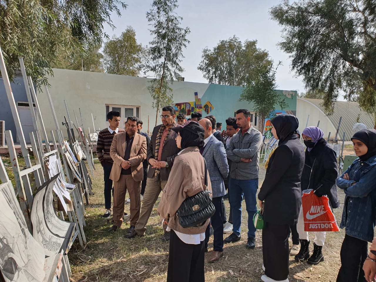 برعاية السيد رئيس جامعة القادسية الاستاذ الدكتور كاظم جبر الجبوري المحترم ومتابعة السيد عميد كلية الفنون الجميلة الاستاذ الدكتور كاظم نوير الزبيدي المحترم واشراف السيد رئيس قسم التربية الفنية ا.م.د.عباس الجبوري اقام طلبة المرحلة الاولى وباشراف والتنسيق مع أ.م.د.وميض سمير مدرس المادة معرضا فنيا للوحات والتخطيط لطلبة المرحلة الأولى