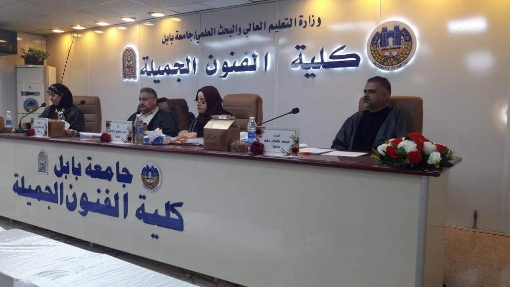 برعاية السيد رئيس جامعة القادسية الاستاذ الدكتور كاظم جبر الجبوري المحترم واشراف ومتابعة السيد عميد كلية الفنون الجميلة الاستاذ الدكتور كاظم نوير الزبيدي المحترم