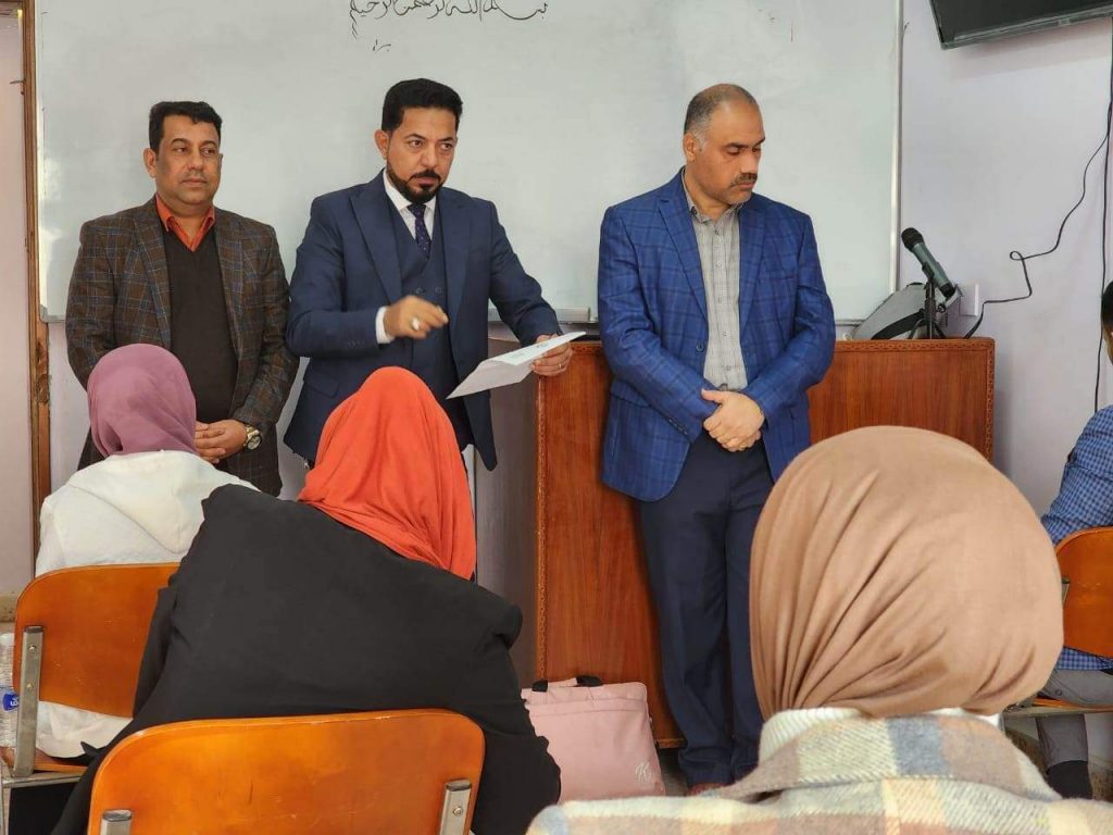 اعلنت اللجان الامتحانية في كلية الفنون الجميلة ببدء امتحانات طلبة الدراسات العليا حسب التوقيات المقررة لها في التقويم الجامعي. هذا وقد تفقد السيد عميد الكلية سير امتحانات الفصل الاول لطلبة الدراسات العليا الماجستير برفقة السادة المعاونين و رؤساء الاقسام العلمية واطلع السيد عميد الكلية على طبيعة الاسئلة ومدى توافقها مع المادة العلمية التي تعطى للطلبة فضلا عن احتياجاتهم أبّان الامتحان وتأتي هذه الجولة لمتابعة الامتحانات والياتها وتذليل عقباتها امام الطلبة لتحقيق نتائج وطموحات الطلبة وتطبيق معاير الجودة التي طالما اكدت عليها وزارة التعليم العالي والبحث العلمي. The College of Fine Arts begins to perform exams for postgraduate students, according to the scheduled times.Under the auspices of the President of the University of Al-Qadisiyah, Professor Dr. Khazim Jabr Al-Jubouri, and the supervision and follow-up of the Dean of the College of Fine Arts, Professor Dr. Khazim Nwir Al-Zubaidi Examination committees at the College of Fine Arts announced the start of exams for postgraduate students, according to the dates set for them in the university calendar. The Dean of the College inspected the conduct of the first semester exams for postgraduate students, accompanied by the assistants and heads of the scientific departments. The Dean of the College was briefed on the nature of the questions and their compatibility with the scientific material given to the students as well as their needs during the exam. This tour comes to follow up the exams and their mechanisms and overcome their obstacles in front of them. Students to achieve the results and aspirations of students and to apply the quality standards that the Ministry of Higher Education and Scientific Research has always emphasized.
