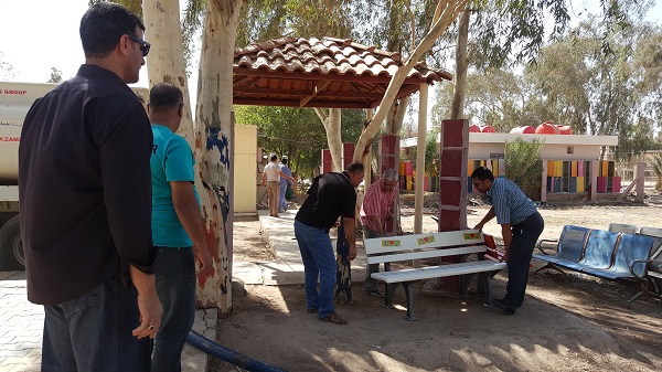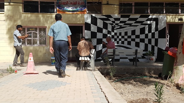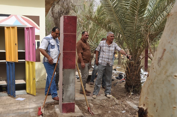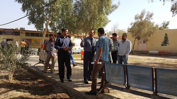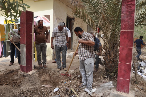 جانب من اعمال الصيانة والاعمار اثناء ايام العطل الرسمية الجمعة والسبت الموافق 7 – 8 /10/2016 باشراف ومتابعة السيد عميد كلية الفنون الجميلة الاستاذ الدكتور (حمزة فاضل يوسف) ومساندة السادة التدريسيين والموظفين والدعم المقدم من قبل دائرة بلدية الديوانية بالكاادر الخدمي والاليات وللاسبوع الثاني على التوالي لحين استكمال جميع الجوانب الجمالية والبنى التحتيه للكلية .