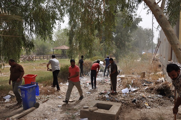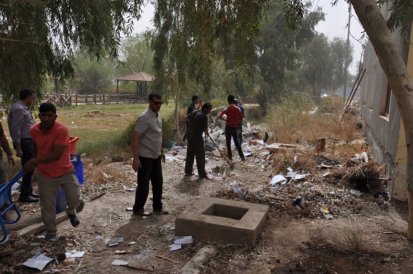 لليوم الثالث على التوالي ومن الساعة الثامنة صباحا وحتى الساعة الثانية والنصف ظهرا وفي اثناء العطل الرسمية استمرت حملة التنظيف والصيانة التي اقترحها واشرف عليها السيد عميد الكلية (أ.د. حمزة فاضل يوسف ) المحترم وبمساندة السادة معاوني العميد والسادة رؤساء الاقسام العلمية والتدريسيين والموظفين وبالتنسيق ودعم مديرية بلدية الديوانية لتوفير الاليات والعمال طيلة الحملة . وقد اختتمت الحملة اليوم بتحقيق عدة معطيات حوهرية. منها ازلة جميع الازبال المتراكمة امام وخلف الاقسام العلمية منذ عدة سنوات وبكميات كبيرة وكذلك تسوية اراضي حدائق الكلية وتقليم الاشجار وغسل الابنية والقاعات الدراسية وتصليح مقاعد جلوس الطلبة وترتيب المختبرات وكانت حملة شاملة ومكثفة متوفرة فيها اجواء التعاون والاخلاص والحرص بين جميع من شارك فيها ابتداءا من السيد عميد الكلية وانتهاءا بعمال الخدمات والصيانة وفي النهاية . تقدم السيد عميد الكلية الى كوادر مديرية بلدية الديوانية بالشكر والامتنان لهم ولدعمهم للكلية خلال الحملة وايضا تقدم بالشكر الى منتسبي الكلية جميعا من تدريسيين وموظفين قائلا ان هذه الروح التعاونية المتوفرة بين افراد ومنتسبي الكلية هي الركيزة الاساسية التي يمكن من خلالها بناء واستكمال كلية الفنون الجميلة ووصولها بمصاف الكليات الرصينة .