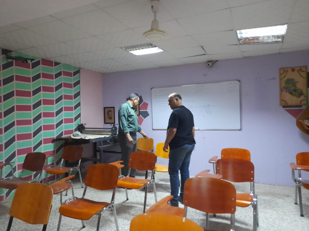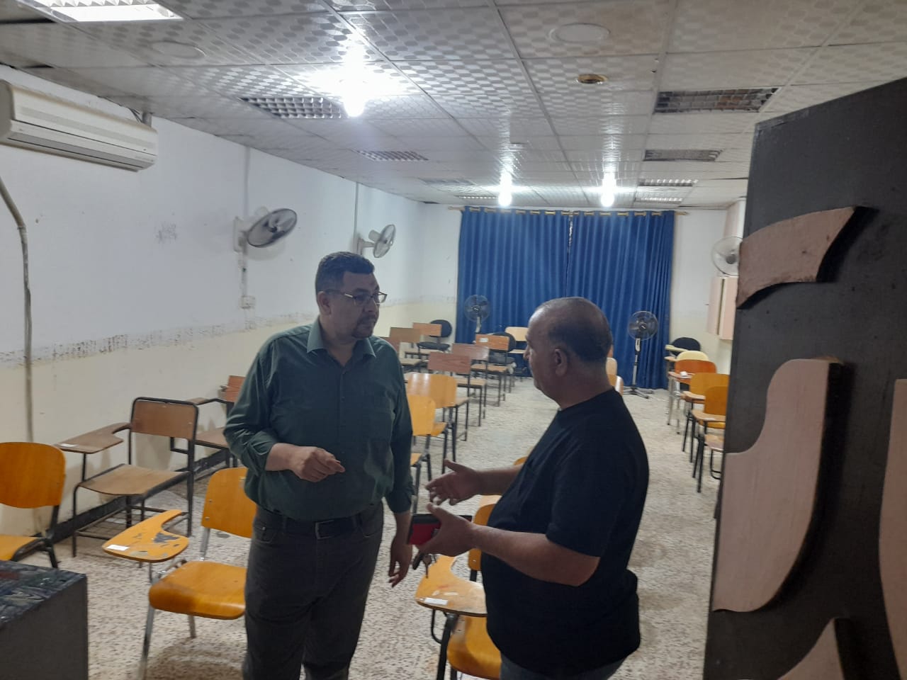 مع بدء الامتحانات النهائية للعام الدراسي 2021_2022 تفقد السيد عميد كلية الفنون الجميلة الاستاذ الدكتور كاظم نوير الزبيدي المحترم والسيد معاون العميد للشؤون الإدارية الدكتور حليم هاتف جاسم مساء اليوم للمختبرات والقاعات الامتحانية للدراستين الصباحية و المسائية وذلك لتمهيد سير الامتحانات الحضورية والاطلاع على توفير الظروف والأجواء الملائمة للطلبة لأداء الامتحانات بأفضل حال .