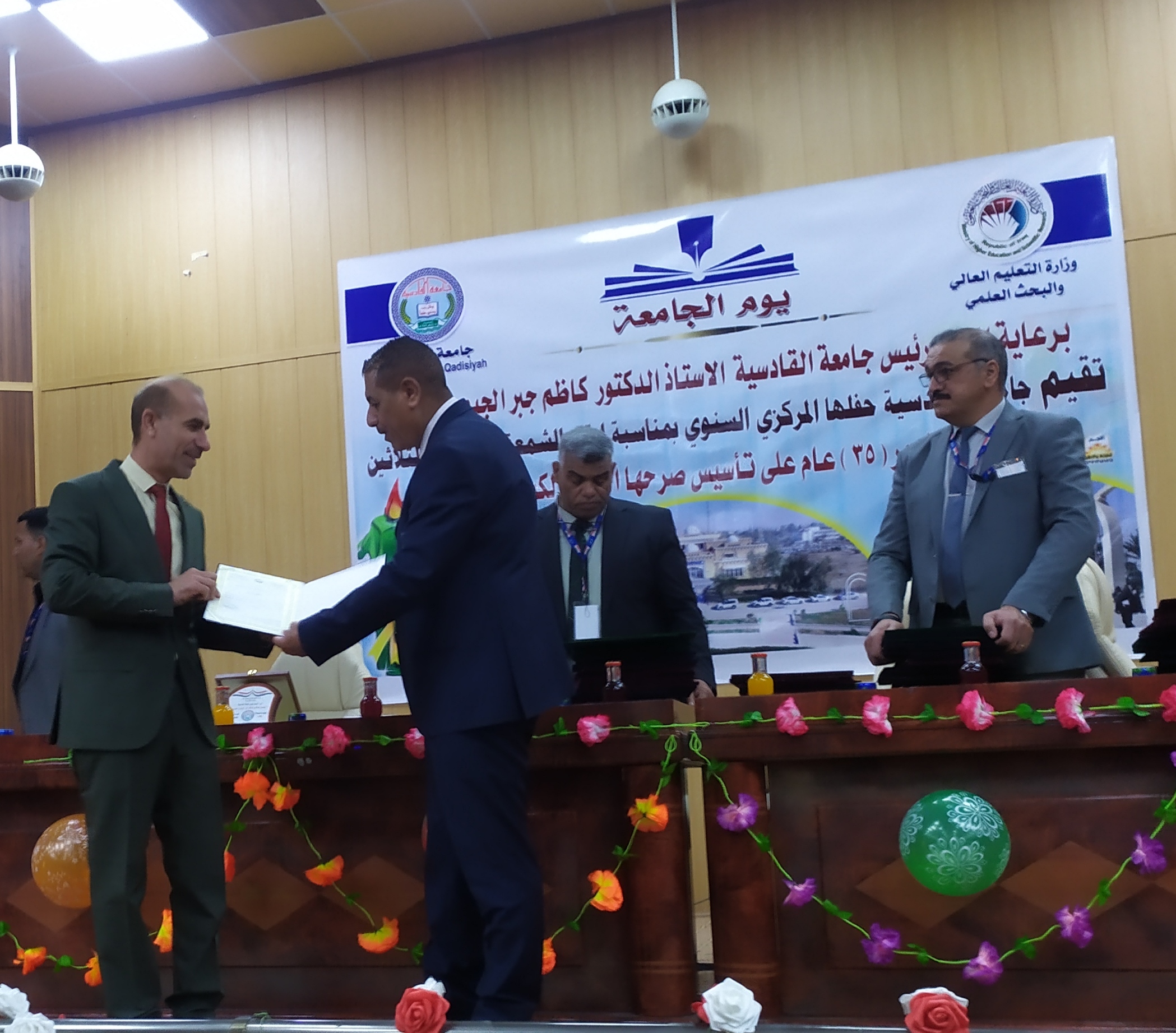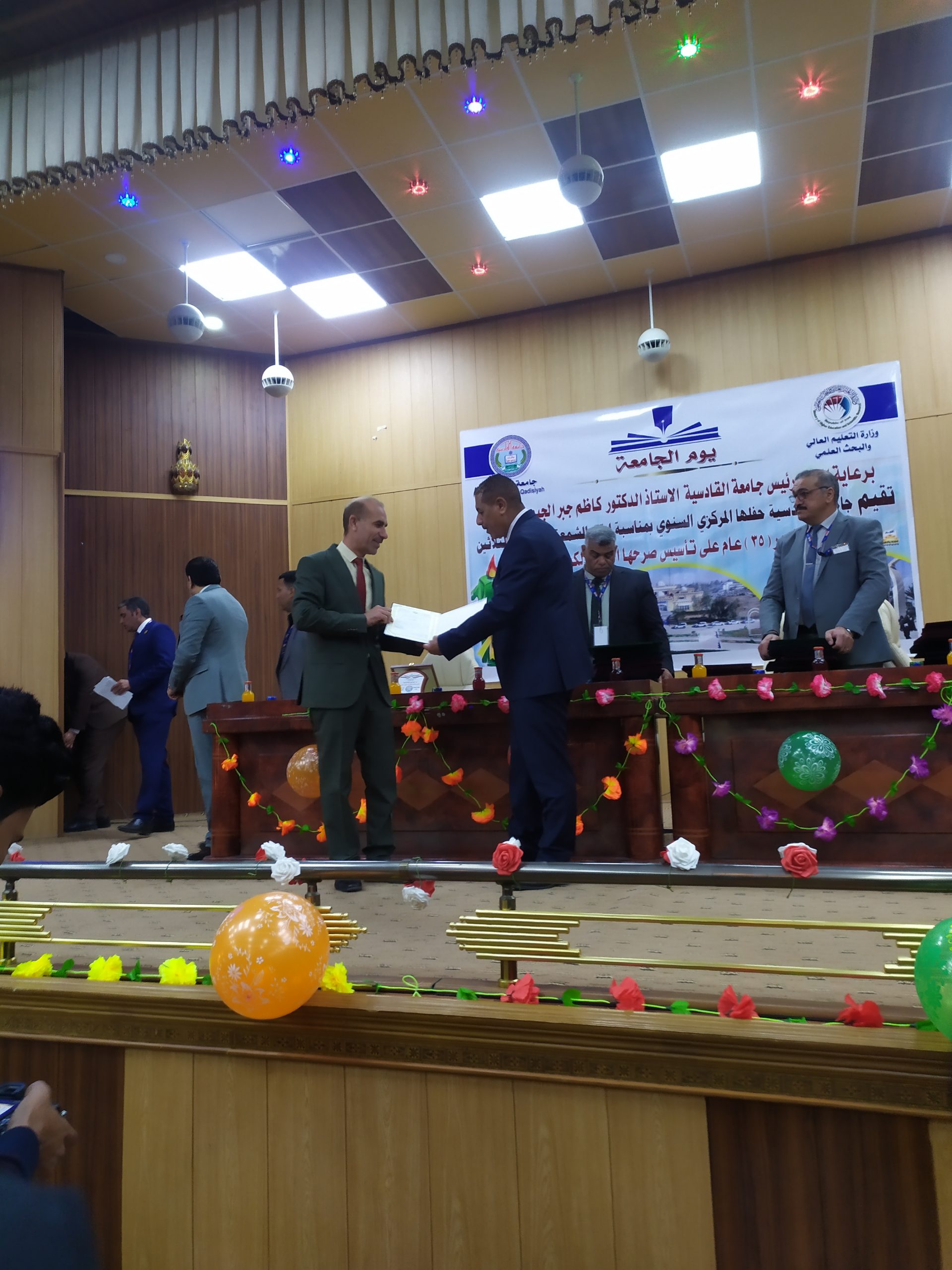 شهدت جامعة القادسية صباح اليوم الأربعاء الموافق ٩/٣/٢٠٢٢ إقامة الاحتفالية المركزية ليوم الجامعة بمناسبة مرور خمس وثلاثون عاما على تأسيسها بحضور السيد رئيس الجامعة والأساتذة عمداء الكليات والسادة التدريسيين وبعض موظفي الجامعة .