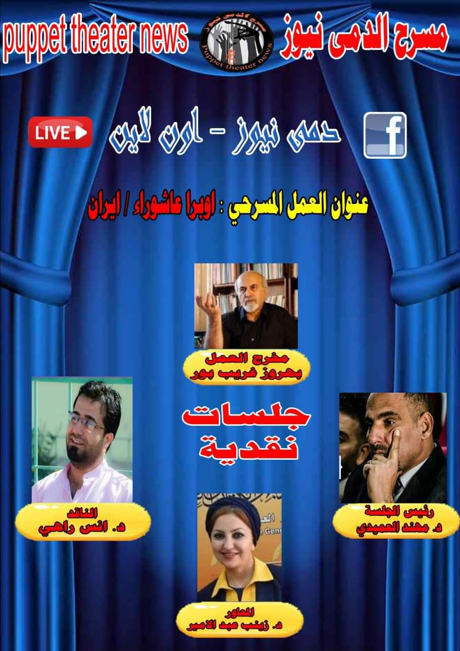اشترك التدريسي في كلية الفنون الجميلة جامعة القادسية الدكتور أنس راهي علي في جلسة نقدية على صفحة مسرح الدمى نيوز ضمن مشروع ( جلسات نقدية ) لعمل الدمى المسرحي (اوبرا عاشوراء ) ، العمل من اخراج الكاتب والمخرج المسرحي ( بهروز غريب بور) من جمهورية ايران ، مؤسس اوبرا الدمى المتحركة الحديثة فيها، علماً ان تسلسل هذا العرض وفقاً لجدول عروض الريبتوار المعلن عنه مسبقاً هو الخامس .
