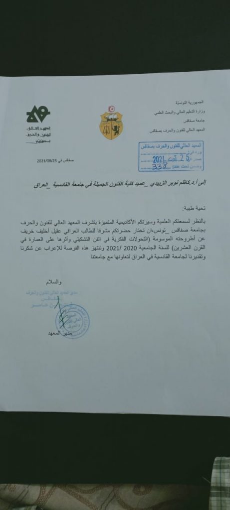 انضم السيد عميد كلية الفنون الجميلة جامعة القادسية الاستاذ الدكتور كاظم نوير الزبيدي المحترم إلى فريق اللجنة العلمية للمجلة الالكترونية بصر آرت .