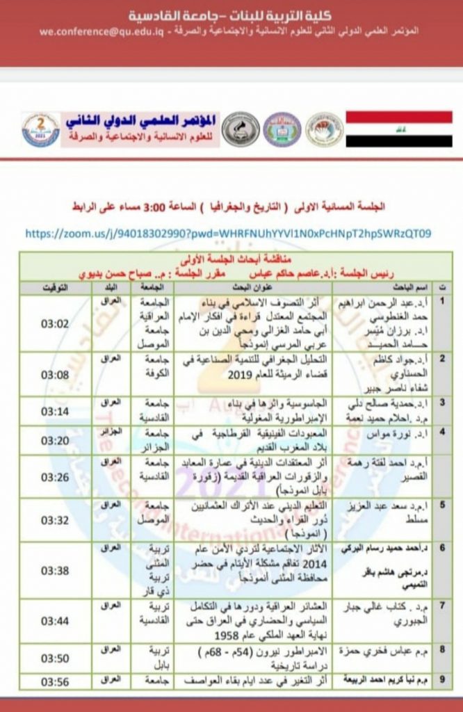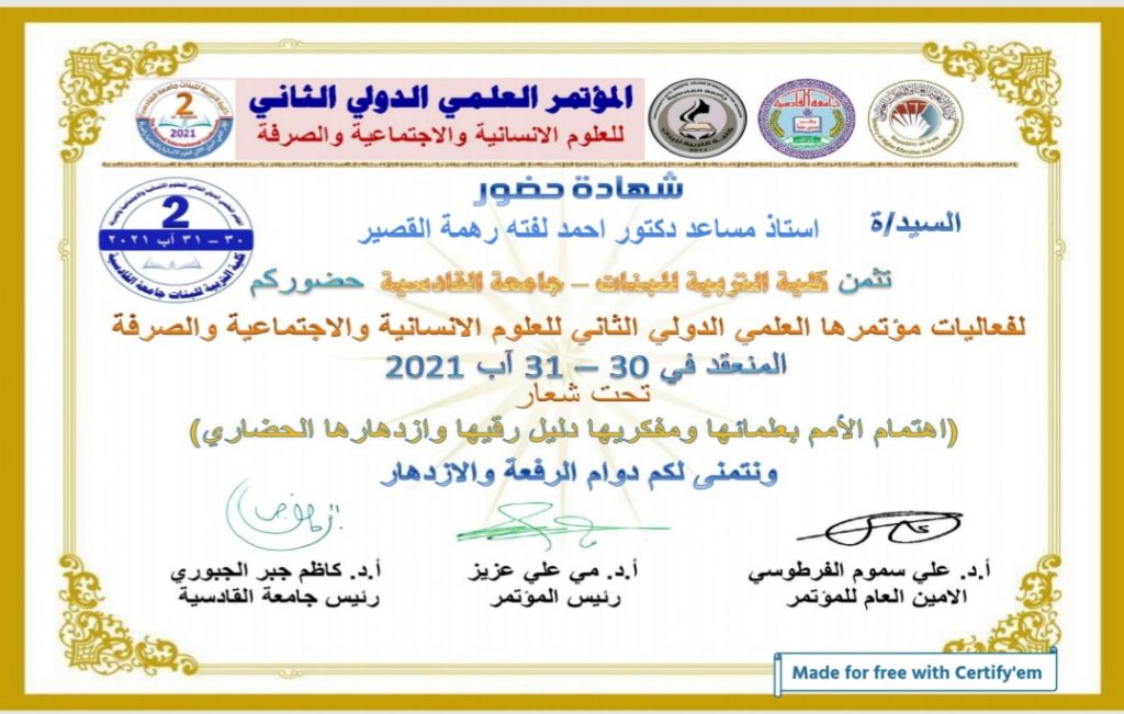 اشترك التدريسي في كلية الفنون الجميلة جامعة القادسية الاستاذ المساعد الدكتور أحمد لفتة رهمة القصير في المؤتمر العلمي الدولي الثاني للعلوم الانسانية والاجتماعية والصرفة الذي أقامته كلية التربية للبنات جامعة القادسية ببحثه الموسوم ( أثر المعتقدات الدينية في عمارة المعابد والزقورات العراقية القديمة _ زقورة بابل انموذجا )