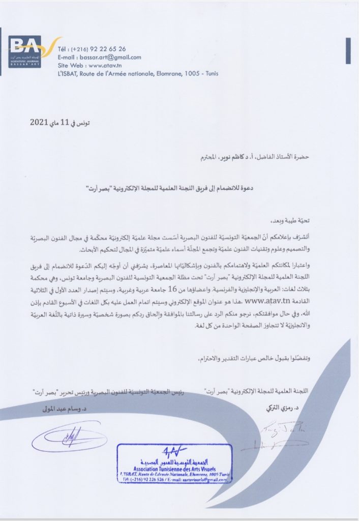 وهي مجلة علمية إلكترونية محكمة في مجال الفنون البصرية والتصميم وعلوم وتقنيات الفنون وتجمع المجلة اسماء علمية متميزة في المجال لتحكيم الأبحاث ، تحت مظلة الجمعية التونسية للفنون البصرية وجامعة تونس .