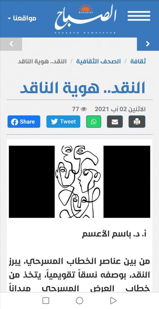 إن النقد المسرحي الوضاء، الذي أنتجته أخيلة النقاد الفارهة، وذهنيتهم الوقادة، وقد أزاح أكوام من المقالات غير النقدية، التي أشاعت المفاهيم الخاطئة عن الممارسة النقدية، وأسهمت في الجانب الآخر إرساء أسس خرسانية صلبة للحركة النقدية التي لا تتسع، أو تترسخ إلا بوساطة مقاربات نقدية واعية ومسؤولة، وذات فهم دقيق لمفاصل البنية التركيبية لخطاب العرض المسرحي، وجزئيات الظاهرة المسرحية، بحسب المعنى العام لمصطلح الخطاب المسرحي، مع يقيننا الأكيد، أن النقد البناء يشيع المصطلحات والمفاهيم النقدية العلمية المتداولة