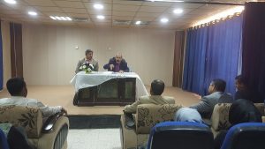 ضيف كلية الفنون الجميلة الاحد الموافق 1/4/2018 هو الفنان الدكتور سامي عبد الحميد لتقديم محاضرة بعنوان (الاخراج في مسرح مابعده الحداثة ) بحضور عميد الكلية أ.د كاظم نوير كاظم الزبيدي والسادة رؤساء الاقسام العلمية و اساتذة وطلبة الكلية.