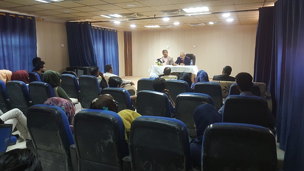 برعاية وحضور السيد عميد كلية الفنون الجميلة الاستاذ الدكتور (كاظم نوير كاظم الزبيدي) المحترم عقد قسم الفنون المسرحية محاضرة حوارية للاستاذ الدكتور باسم الاعسم يوم الاربعاء الموافق7/3/2018 وبحضور السادة معاوني العميد للشؤون العلمية والادارية والسادة رؤساء الاقسام العلمية والتدريسيين والطلبة . تناول الأعسم في ورقته «الفضاء المسرحي بين التقليد والتجديد»، بنية خطاب العرض المسرحي وتشكلها من فضاءات متعددة ومتنوعة، تشكل في مجملها «الفضاء المسرحي»، مشيراً إلى أن التحديد المكاني لخشبة المسرح؛ يتقاطع والرؤى التجديدية المغايرة المؤثثة لفضاء العرض الأرحب ، مؤكداً أن المسرح العربي المعاصر قد شهد صراعات جسدت إرادات وتطلعات متباينة على صعيد المدارس الإخراجية. مستعرضاً التحولات التي عرفها تشكيل الفضاء المسرحي بداية من مطلع القرن الماضي في أوروبا على وجه التحديد. ادارة الجلسة الحوارية الدكتور اديب علوان العتبي الذي بدوره فسح المجال امام الحاضرين لطرح تساؤلاتهم وطروحاتهم التي اجابة عليها الناقد الدكتور باسم الاعسم وفي الختام تقدم السيد عميد الكلية بالشكر الجزيل للدكتور الاعسم لتمثيله كلية الفنون الجميلة وجامعة القادسية في مهرجان دبا الحصن الثنائي في دولة الامارات العربية والذي تميزة بحضوره الفعال والشكر ايضا لعقدة هذه المحاضرة الحوارية الممتعة.