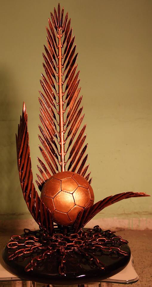 تقدم الفنان والنحات الاستاذ حسين الكرعاوي التدريسي في كليتنا بعمل فني بعنوان (رفع الحظر عن الملاعب العراقية) مصنوع من مادة الحديد ويتكون العمل الفني من كرة قدم تعبر عن الملاعب العراقية والسعفة او النخلة تمثل الهوية العراقية اما السلاسل الموجودة اسف العمل تمثل الحظر المفروض على الملاعب العراقية وقد جاء هذا العمل من قبل الفنان حسين الكرعاوي متزامن مع الوقفات الاحتجاجية التي عبر عنها العراقين جميعا ضد الانتهاكات المفروضة على الملاعب العراقية. ويعد الفنان الكرعاوي من الفنانين البارزين في اعمالهم الفنية المعبرة والرائعة التي انتشرت في ربوع جامعتنا بصورة خاصة والمحافظة بشكل عام . .