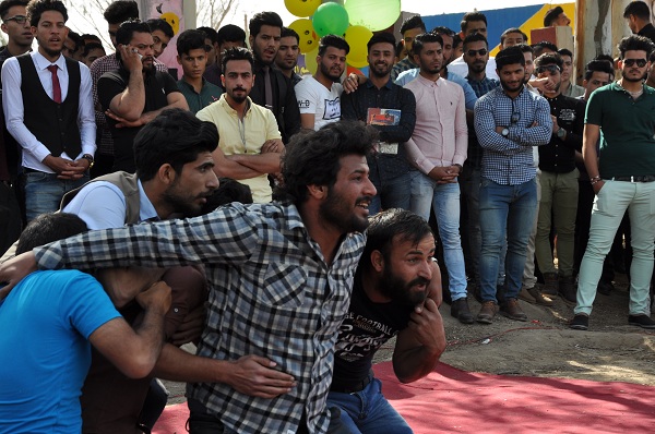 برعاية السيد رئيس جامعة القادسية المحترم وبأشراف السيد عميد كلية الفنون الجميلة (أ.د. حمزة فاضل يوسف) ومتابعة السادة رؤساء الاقسام العلمية والسادة معاوني العميد للشؤون العلمية والإدارية. افتتحت فعاليات مهرجان طلبة كلية الفنون الجميلة الذي تضمن العديد من الفقرات المتنوعة منها معرضا للوحات الفنية ومعرضا للفخار والخزف وعروض مسرحية متنوعة وعزف وغناء فرقة الانشاد بقيادة الدكتور اسعد جواد ومسابقات وبازار للإعمال اليدوية وعروض أفلام قصيرة واستمر المهرجان لمدة يومان الأربعاء والخميس الموافق 15-16- 3-2017 وبحضور السيد ممثل السيد رئيس الجامعة ( ا.د.فردوس عباس جابر )المحترمة والسيد مساعد رئيس الجامعة للشؤون الإدارية (أ.د. عادل تركي ) المحترم والسيد عميد كلية الآثار (أ.م.د احمد محمد طنش ) المحترم وعدد كبير من الضيوف والفنانين وطلبة كليات جامعة القادسية وقد افتتح المهرجان بحضور السيد محافظ الديوانية الدكتور (سامي الحسناوي ) المحترم الذي أبدى إعجابه وسروره بافتتاح كلية الفنون ولما تقدمه الكلية من عطاءات فنية وثقافية وإبداعيه الى المحافظة وقد قدم السيد عميد كلية الفنون الجميلة (أ.د. حمزة فاضل يوسف ) درع المهرجان الى السيد المحافظ والسيد ممثل رئيس الجامعة ومساعد رئيس الجامعة للشؤون الادارية بعد ذلك استمرت فعاليات المهرجان المتنوعة التي إدخلت البهجة والسرور على الجمهور . وقد اخذ المهرجان صدى واسع في عموم المحافظة حيث وصل الى البيوت العراقية من خلال مشاهدة البث المباشر على مواقع التواصل الاجتماعي الخاصة بكلية الفنون الجميلة لفعاليات المهرجان بكل تفاصيلها والكواليس الخاصة بها . وقد برز مجموعه من طلبة الكلية المبدعين أصحاب المواهب الفنية مثل احمد الكناني الذي قدم عرض استاند اب كومدي وأبدع فيه والطالب سيف الدين علاء الدين الذي قدم مشهد صامت وحيدر الموسوي في الشعر والغناء وايهاب الخزاعي ونوار الكعبي في الرسم والنحت وكرارعلي في النحت وعلي مراد في الرسم والتصميم واماني عماد وغيرهم من الطلبة الذي ابهروا المشاهدين بما تم طرحه خلال المهرجان وفي الختام تقدم السيد عميد الكلية للجنة المشرفة على المهرجان وللطلبة الاعزاء جميعا وللاساتذه الكرام بالشكر الجزيل لوعيهم الثقافي والفني الذي ادخل البهجة على الحاضرين خلال الفعاليات والمشاهدين عبر البث المباشر ولإنجاحهم المهرجان.