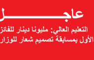 خصصت وزارة التعليم العالي والبحث العلمي، مليوني دينار للفائز الاول، ومليوناً وخمسمئة ألف دينار للفائز الثاني، ومليون دينار للفائز الثالث، للفائزين بمسابقة تصميم شعار للوزارة التي اطلقتها مؤخرا، مبينةً أن آخر موعد للتقديم على هذه المسابقة سيكون نهاية الدوام الرسمي ليوم الخميس الموافق 2017/3/30.