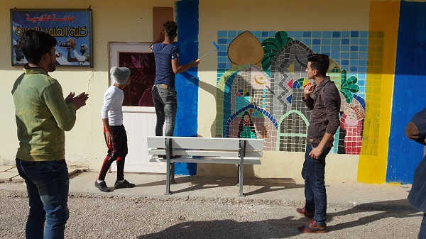 لقد عمدة كلية الفنون الجميلة وعلى مدى سبعة ايام ابتداءً من يوم السبت الماضي الى يوم الخميس المصادف 8/12/2016 الى منهجة الحملة التطوعية بمراحل ثلاث الاولى بدات يوم السبت الماضي قام بها السيد عميد الكلية واساتذة الكلية والثانية يوم الثلاثاء وقام بها شعبة الاعلام مع طلبة الكلية والمرحلة الثالثة تمت يوم الخميس وشارك بها الجميع تدريسون واساتذة وموظفين وباشراف الاستاذ الدكتور (حمزة فاضل يوسف ) عميد الكلية اذ تلونت الكلية بالوان زاهيه وجدران تشير الى انها بحق كلية الجمال والفنون واكتست ارضها بالمزروعات النظيرة ولن تتوقف هذه الحملة في كلية الفنون الجميلة فقد اكد الجميع انهم ساعون بقوة الى جعل كلية الفنون الوجه المشرق لجامعة القادسية وبامتياز .