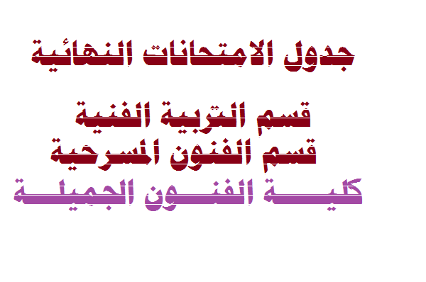 تعلن عمادة كلية الفنون الجميلة جامعة القادسية لطلبتها جدول الامتحانات النهائية للدروس النظرية للعام الدراسي 2016-2017 الدور الاول .كل التوفيق للطلبة الاعزاء