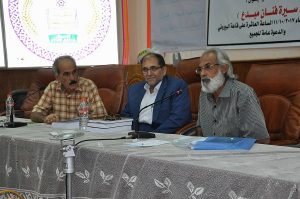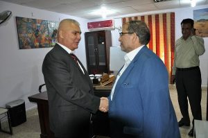 استضافة كلية الفنون الجميلة برعاية عميدها الاستاذ الدكتور (حمزة فاضل يوسف) المحترم الفنان والمخرج والممثل والكاتب المسرحي العراقي المغترب (عبد الصاحب ابراهيم اميري) يوم الاربعاء الموافق 11/10/2017 الساعة العاشرة صباحا وبحضور اساتذة وطلبة الكلية والضيوف الكرام من الفنانين .وتوزع برنامج الاستضافة على عدة محاور حيث استعرض الاستاذ الدكتور( باسم الاعسم ) تجربة الفنان العراقي عبد الصاحب اميري في المسرح والفن والأعمال الدرامية عامة وقراءة أهم مميزاتها فضلا عن تقديم دراسة نقدية في تجربة الفنان (عبد الصاحب اميري ) ومن ثم قدم الاستاذ الدكتور( رحمن غركان) محاضرة نقدية في أشكال الخطاب الفني وأشاره فيها الى تجربة الفنان اميري وخبراته في هذا الجانب .اما المحور الثالث من الاستضافة تناول فيها الفنان اميري نبذة عن سيرتة الذاتية والفنية والابداعية ومؤلفاته المتعددة وفي الختام قدم الفان اميري مشهدا تمثيلياً من نص بعنوان ( عزاء المراة العراقية ) ومن ثم اهدى مجموعة من مؤلفاته الى مكتبة كلية الفنون الجميلة ومكتبة كلية التربية وبعض الاهدائات الى السادة التدريسيين والأصدقاء وقد تقدم السيد عميد الكلية بالشكر الجزيل الى الفنان والكاتب والمخرج المسرحي (عبد الصاحب اميري ) مجددا له الدعوة للتواصل مع كلية الفنون الجميلة للمزيد من الحلقات النقاشية والمحاضرات النوعية لفائدة طلبتنا الاعزاء.