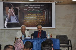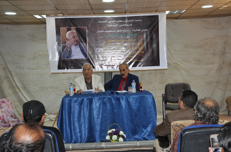 ضيف كلية الفنون الجميلة الاحد الموافق 1/4/2018 هو الفنان الدكتور سامي عبد الحميد لتقديم محاضرة بعنوان (الاخراج في مسرح مابعده الحداثة ) بحضور عميد الكلية أ.د كاظم نوير كاظم الزبيدي والسادة رؤساء الاقسام العلمية و اساتذة وطلبة الكلية.