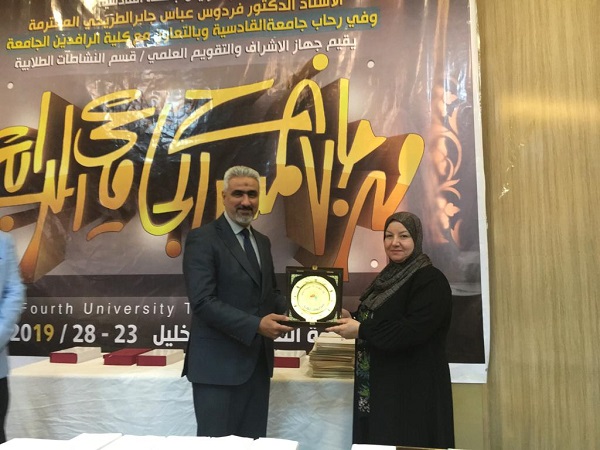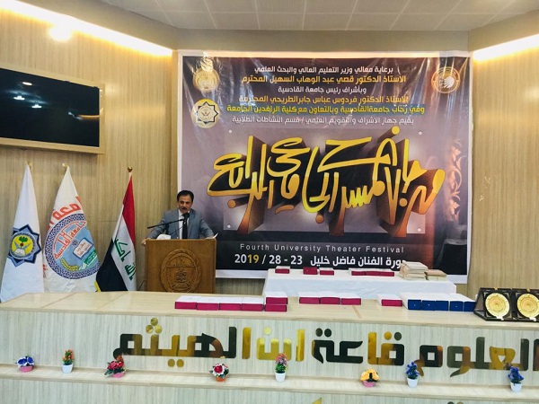 احتضنت جامعة القادسية وبالتعاون مع كلية الفنون الجميلة المهرجان السنوي الرابع للمسرح الجامعي ، وانطلقت فعاليات المهرجان ابتداءَ من 23 ولغاية 28 /3/2019 على قاعة نيبور وافتتحت فعاليات المهرجان بأيةَ من الذكر الحكيم وقراءة النشيد الوطني وسورة الفاتحة على ارواح شهداء العراق وفاجعة العبارة في الموصل الحبيبة وبعدها القت السيدة رئيس جامعة القادسية الاستاذ الدكتور فردوس عباس جابر الطريحي المحترمة كلمه المهرجان التي اشادت خلالها بجهود المنظمين والقائمين على المهرجان مشدده على اهمية الانفتاح على شرائح المجتمع كافة وتقديم الاعمال المثمرة التي تسهم ببناء الانسان وكان اول الاعمال المسرحية في المهرجان عمل مسرحي لكلية الفنون الجميلة جامعة القادسية بعنوان Z100 حيث نال اعجاب الحاضرين واللجان التحكيمية والنقدية وحصل العمل على جائزة افضل سينوغرافيا العمل اشراف الدكتور حليم هاتف وقد واكد السيد عميد كلية الفنون الجميلة الاستاذ الدكتور كاظم نوير الزبيدي وعضو اللجنة العليا للمهرجان بان هذا المهرجان انما يأتي ضمن التوجهات الفكرية والتربوية التي تقدمها كلية الفنون الجميلة بالانفتاح على المجتمع وتحويل الدرس الاكاديمي الى واقع تطبيقي عملي لإفادة المجتمع منه كون اغلب العروض تضمنت ثيم وافكار تربوية وتحاكي موضوعة مسرحة موضوعات متعددة وتقديم الافكار العلمية والتربوية بطريقة فنية مشوقة ، وقد شارك في المهرجان 16 عملاً مسرحياً من مختلف جامعات العراق.