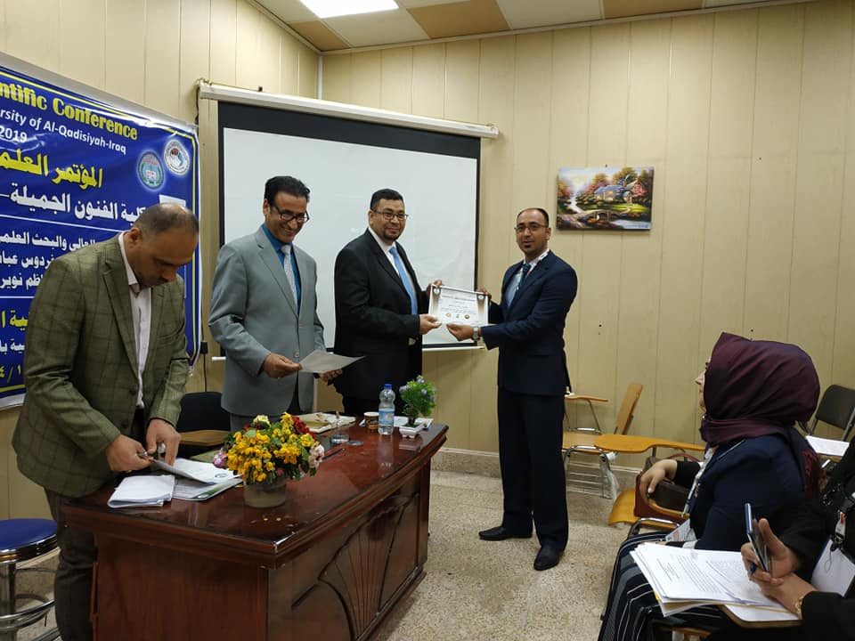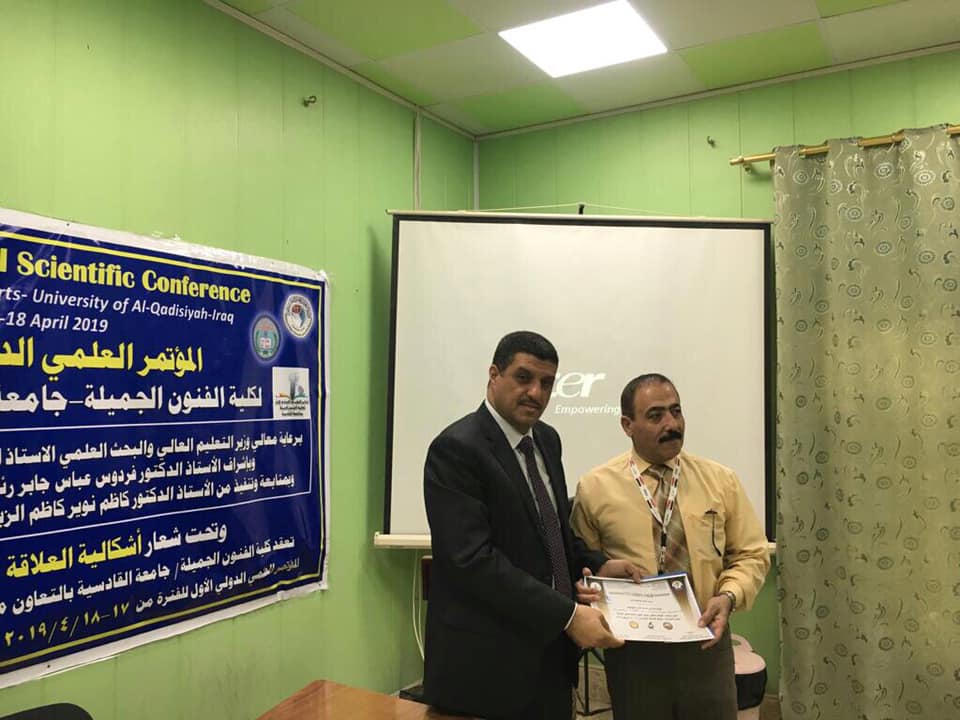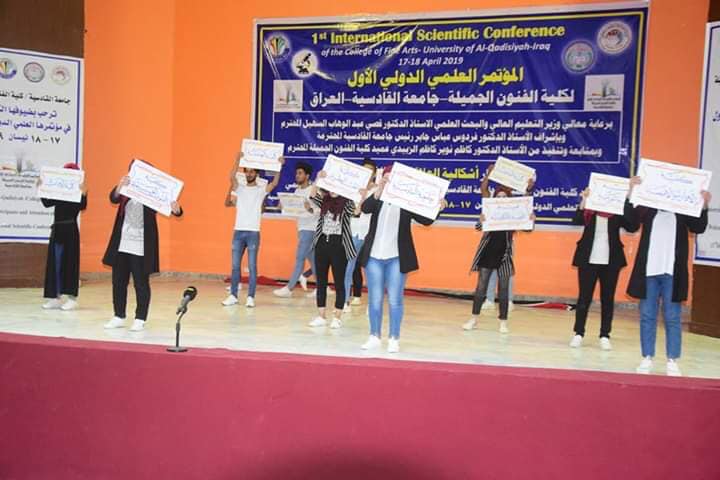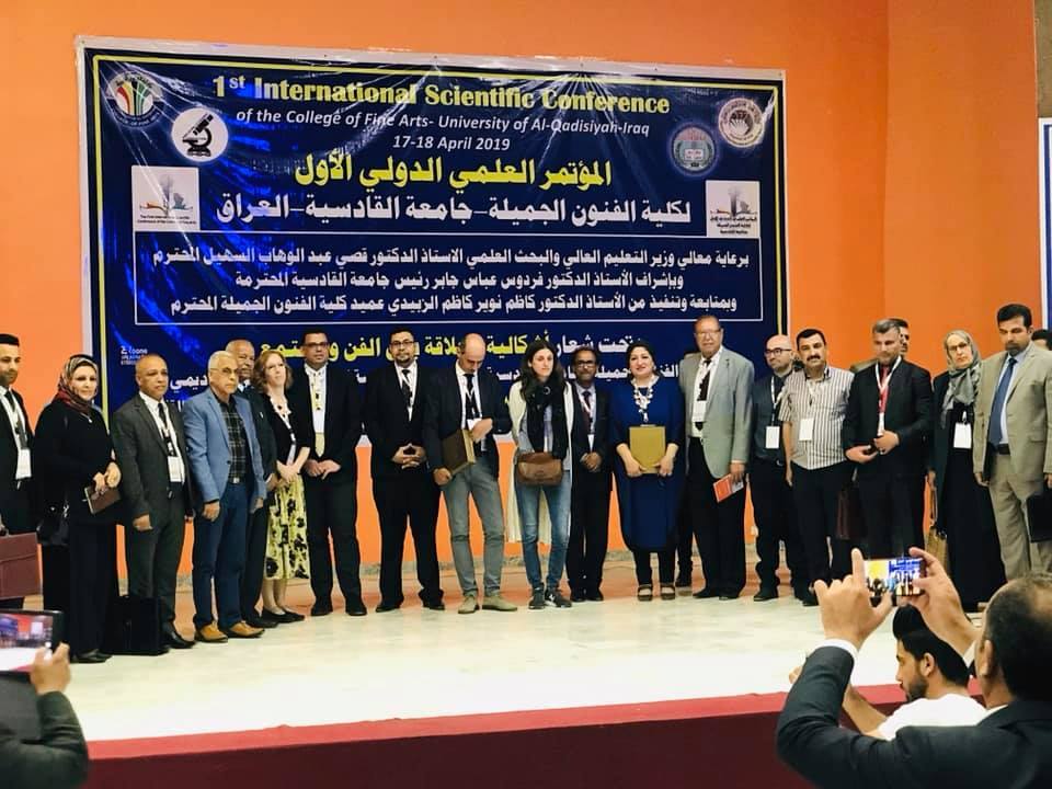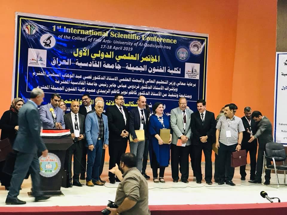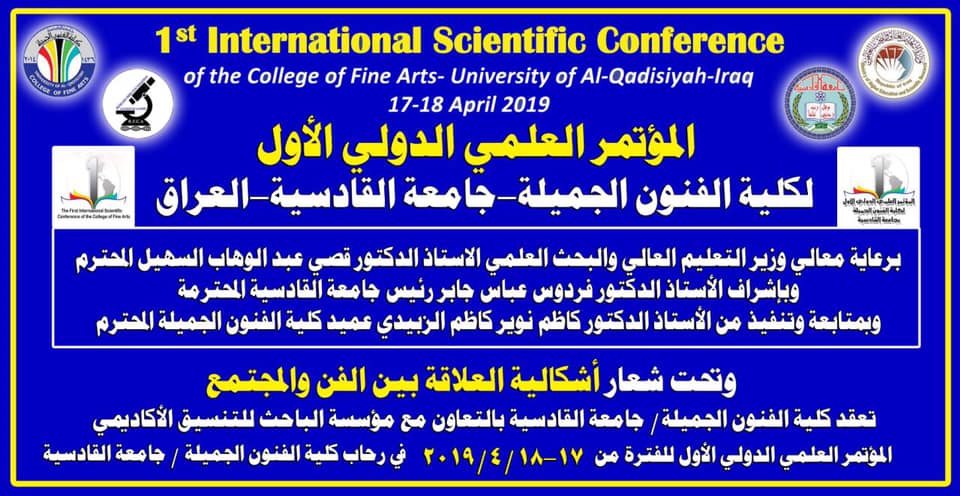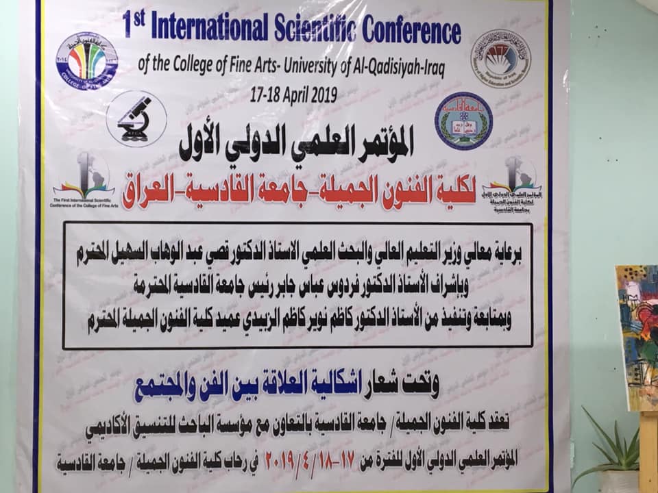تحت شعار اشكالية العلاقة بين الفن والمجتمع أقامت كلية الفنون الجميلة جامعة القادسية مؤتمرها العلمي الدولي الاول بمشاركة باحثين يمثلون دول الولايات المتحدة الامريكية والمانيا وايطاليا والاتحاد الاوربي ومصر وإيران فضلا عن باحثين من مختلف الجامعات العراقية بحضور رسمي وأكاديمي كبير .
