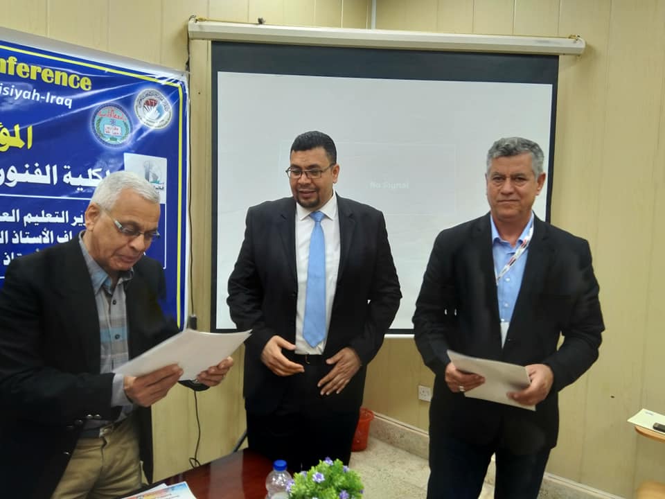 وقال السيد مساعد رئيس الجامعة الاستاذ الدكتور عامر دحام ممثل السيدة رئيس الجامعة في المؤتمر بكلمته بعد ترحيبه بالحضور والباحثين باللغتين العربية والانكليزية إن هذا المؤتمر سيمثل نتيجة حتمية في تطور الفنون الجميلة على مستوى جميع الاختصاصات العامة والدقيقة لتصبح رافدا حقيقيا في تطور العلوم الصرفة لان المناهج العلمية تتكامل بطريقة وبأخرى ضمن مساحات وأبعاد فلسفية متنوعة .