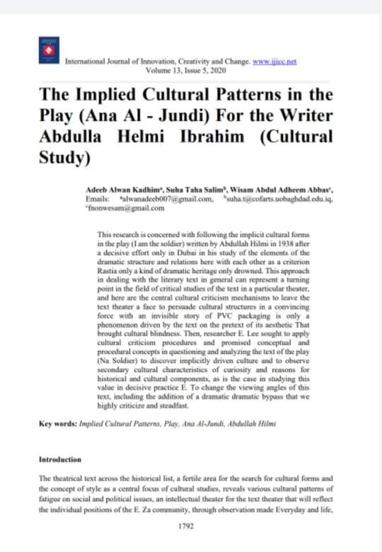 The Implied Cultural Patterns in the Play (Ana Al – Jundi) For the Writer