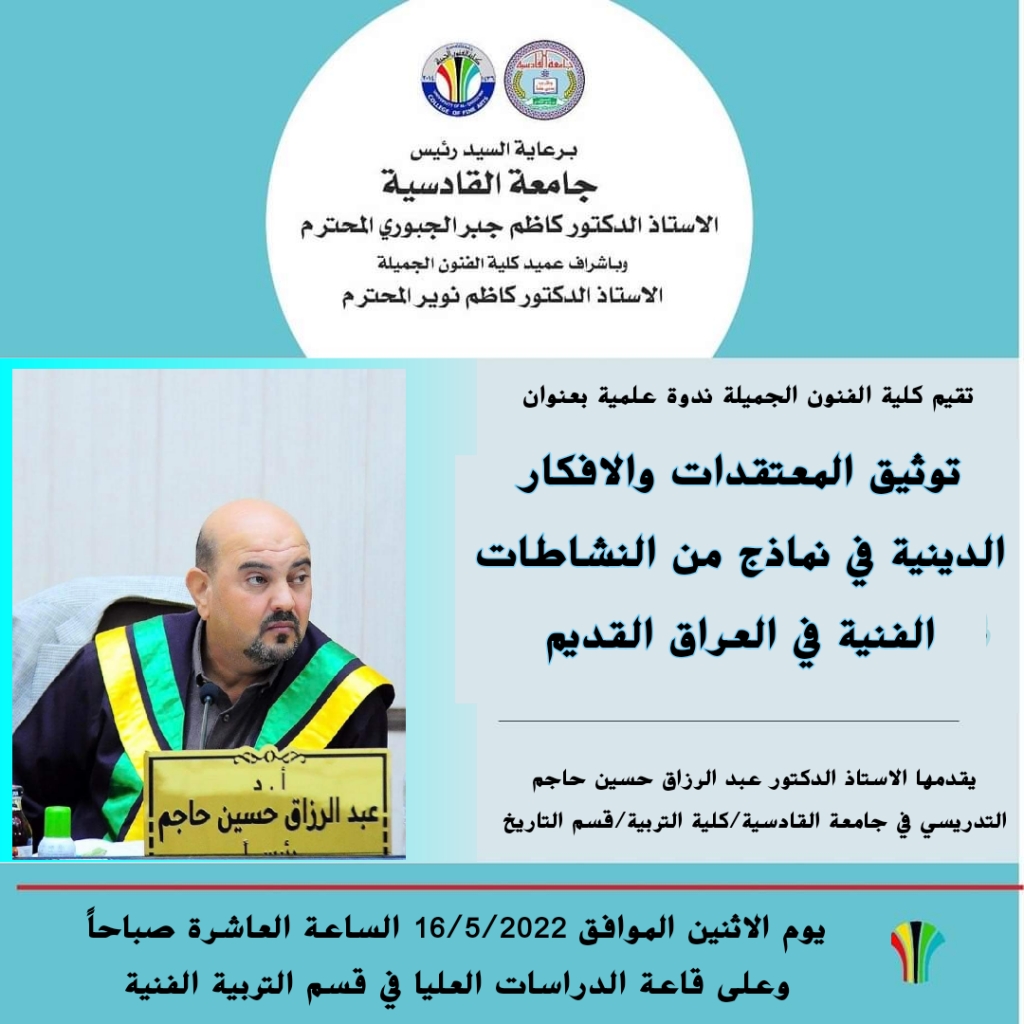كلية الفنون الجميلة تعقد ندوة علمية بعنوان( الفن والمجتمع في بلاد الرافدين ).
